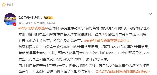 80后匈牙利新总理发表讲话,外表年轻有为帅气硬朗,还透露几点重要消息! 4月12日晚,匈牙利总理的选举已经非常明朗了,现任总理欧尔班已经彻底败选,而新总理毛焦尔·彼得马上就会上任了。从竞选上看,虽然欧尔班得到了美方的支持,万斯还亲自过来助阵,可是也没有获得胜利,不得不说匈牙利也不把美放在眼里。 当晚,即将是匈牙利新总理的毛焦尔·彼得发布了新的演讲,从曝光的画面我们可以看出,这位新总理外表英俊帅气,发型也超酷,非常年轻,还是一位80后,今年才44岁,可以说在总理之中是非常年轻的一位。另外他讲话也很有气场,不知道他当选新总理会给匈牙利带来什么福利。 在讲话中,匈牙利新总理还透露几点重要的消息。 第一,匈牙利将再度成为北约与欧盟内部坚定可靠的盟友。 第二,匈牙利新总理上任后会首次出访波兰,巩固两国千年情谊; 第三,还会出访奔赴维也纳;并前往布鲁塞尔,追回本就属于我们、理应到位的欧盟资金款项。 大家也知道,毛焦尔·彼得是一位法律出身的总理,主修法律,曾是外交官与政府顾问,也是欧尔班领导的青民盟核心成员,还担任过欧洲议会议员。可以说他能够当选匈牙利新总理,主要就是精准抓住了民众诉求。他的政治主张贴合当下匈牙利的需求,国内主打强力反腐,重建独立司法与媒体,改善医疗、社保等民生问题,提振低迷经济;外交上主张亲近欧盟与北约,修复与欧盟的紧张关系,争取解冻被冻结的资金,同时逐步减少对俄罗斯的能源依赖。 随后,匈牙利总理欧尔班就大选败选作出正式表态,全文如下: 尽管选举最终结果尚未完全敲定,但当前局势已然明朗,最终走向也已清晰可辨。 组建新一届政府的责任与执政机遇,此番并未降临到我们身上。对此,我已向胜选政党致以诚挚祝贺。在此,我再次向获胜党派表示祝贺,愿其能不负民众期待,履行好执政职责。 当然了根据现在情况看,匈牙利有可能要变天了,欧盟在匈牙利取得了胜利,美国、俄罗斯等有点失落了。大家觉得呢?