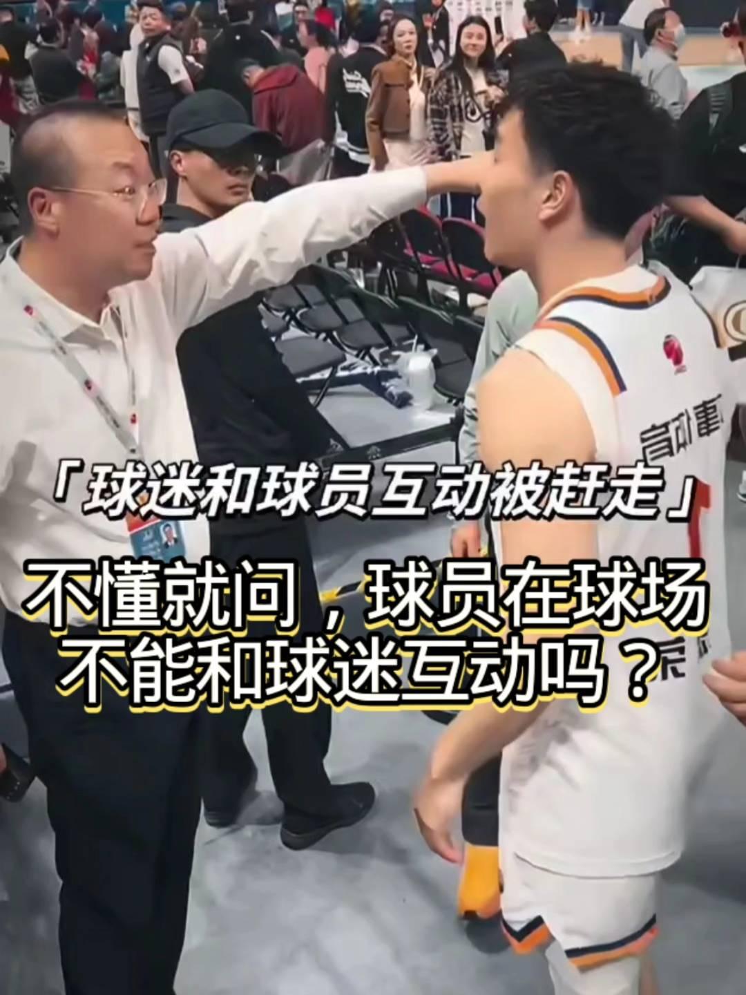 球迷和球员互动被赶走。 不懂就问,球员在球场不能和球迷互动吗?北京首钢主场这工作人员真霸气,禁止球员和球迷交流。球迷只想和球员拍手互动一下,被管理人员直接推开,继续推开,不让互动。球员看起来已经很生气了,还是不甘心,继续回来。这一幕真的心寒。