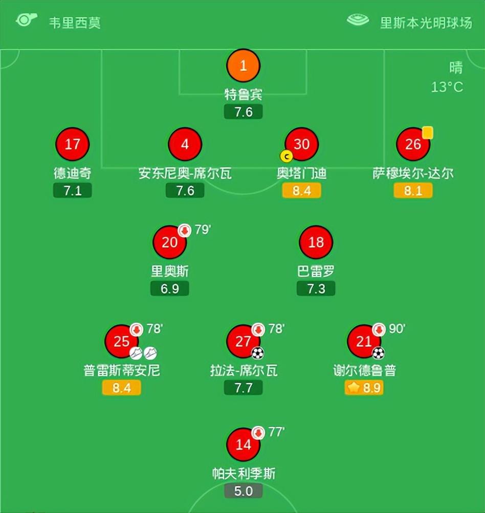对穆里尼奥来说,好消息是不败记录还在延续,坏消息是下一场只要不赢球就赛季结束。 在对阵卡萨皮亚的平局之后,本菲卡在主场2-0战胜国民队,在与葡萄牙体育的德比战前成功反弹。谢尔德鲁普首开纪录,他和普雷斯蒂安尼在打完皇马之后,越踢越好,欧冠真是年轻人的舞台。本场比赛,这两位19岁和21岁的边锋,先是内收吸引,不断拉到防线外侧折磨对手的后防线。直到第78分钟,为了世界杯,踢的小心翼翼,生怕踩疼草坪上蚂蚁的比利时右边锋卢克巴基奥,换下了普雷斯蒂安尼。 敲打是有用的,打进第二球的拉法席尔瓦这场卖力多了,至于对抗不行的苏达科夫,这场压根没让他上,不能为了乌克兰的世界杯之旅,让本菲卡来买单吧! 本菲卡全场25次射门,8次射正,15个角球,58%的控球率,结果是2-0。前锋依然浪的飞起,话说,能不能买个好前锋,帕夫利季斯真的难堪大用,连点球都踢不进,神一场鬼三场,在第77分钟,被伊万诺维奇换下。 巴雷罗搭档里奥斯,两人在后腰位置上,勤勤恳恳,覆盖全场。上半赛季穆里尼奥的心头肉,还没有入选阿根廷队的节拍器巴雷内切亚,在第79分钟,替补哥伦比亚人登场,伤愈复出后,他暂时失宠了,在继续提升自己之前,梳理中场的任务,交给了33岁的老将拉法席尔瓦。 奥尔斯内斯也回来了,他在第78分钟换下前腰位置拉法,让巴雷罗前移,自己搭档巴雷内切亚打后腰。在前腰位置这个关键岗位上,奥尔斯内斯的序列,在巴雷罗之后。 终场哨声吹响,本菲卡全取3分,重回胜利之路。下周日(4 月 19 日)下午 6 点,红鹰将客场对阵葡萄牙体育,两队目前的分差是2分,但葡萄牙体育少赛一场,所以此战不胜的话,本菲卡本赛季将提前结束,获得葡超联赛第三名,下赛季只能打欧联杯。