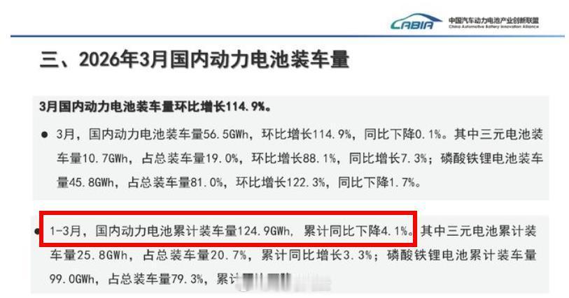 罕见!25Q1,国内动力电池累计装车量同比下滑4.1%