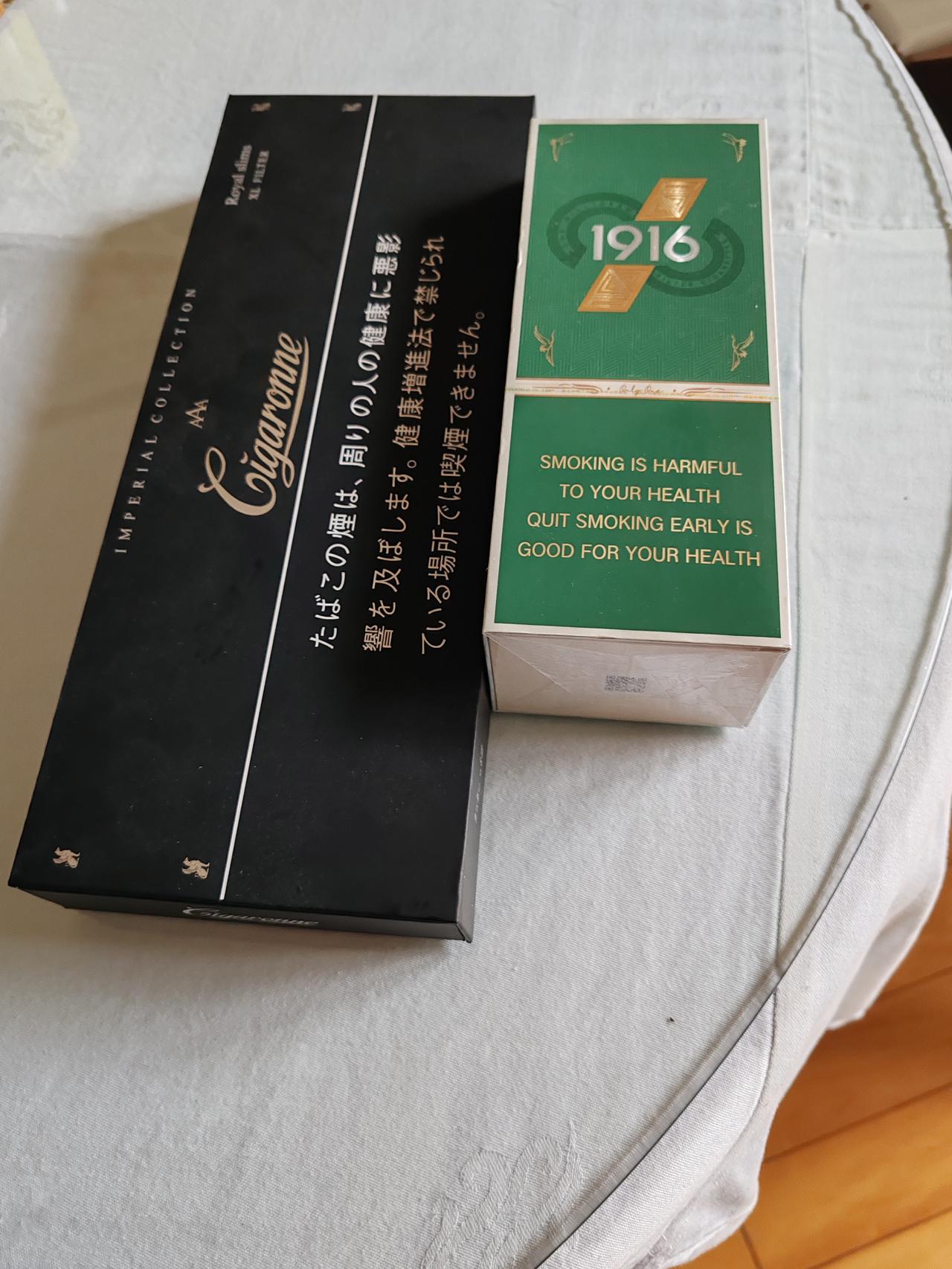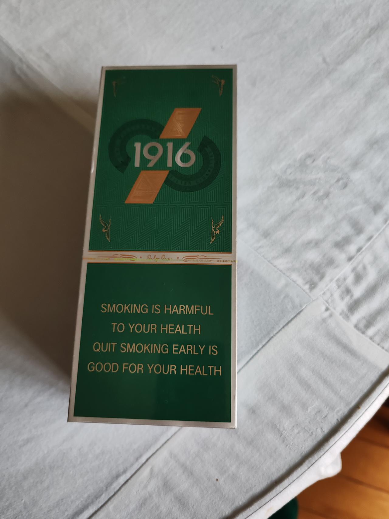 抽烟抽了近50年,平时的烟都是儿子买的,基本都是软硬中华,偶尔熊猫,儿子因工作关系,经常飞日本,这种绿黄鹤楼1916烟从没见过,就买了一条给我解馋,黑色的,是日本品牌,不好抽。