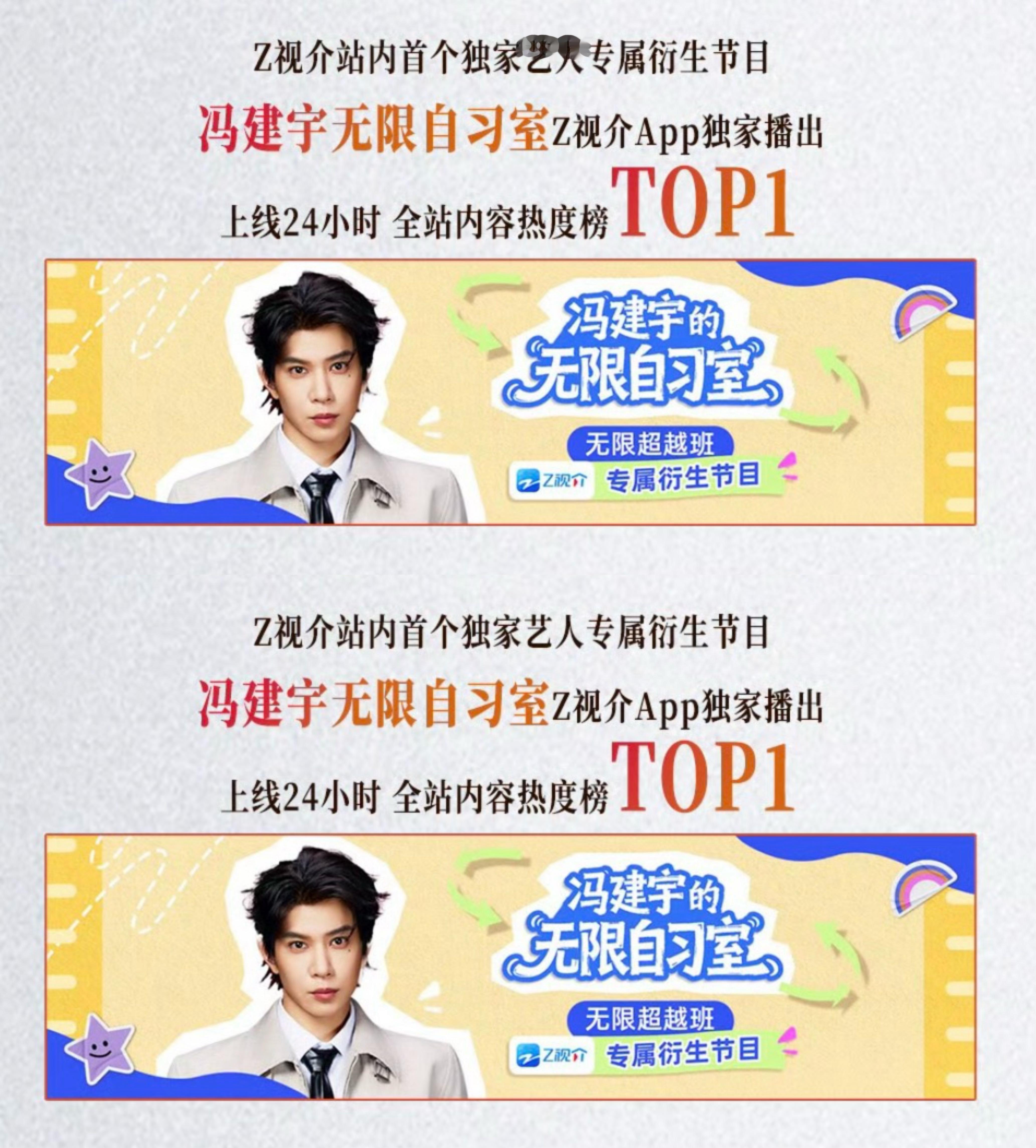冯建宇无限自习室热度top1 恭喜冯建宇无限超越班专属衍生节目无限自习室上线24小时全站内容热度榜top1,用演技收获喜爱的大宇👍🏻👍🏻