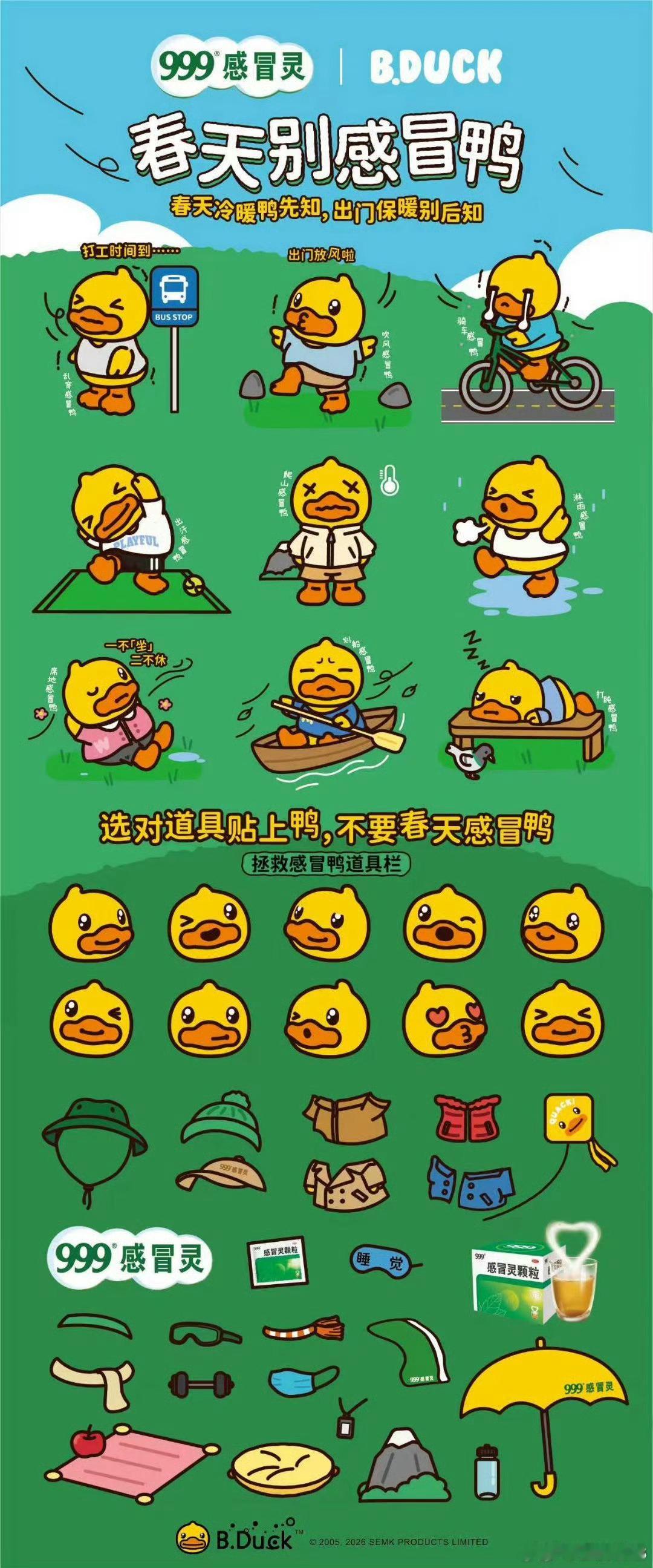 没有一只鸭子逃得过上海春天春天运动完出一身汗被风一吹就容易不舒服,上海的天气更是让人防不胜防,999感冒灵携手小黄鸭提醒大家及时擦汗做好保暖超贴心