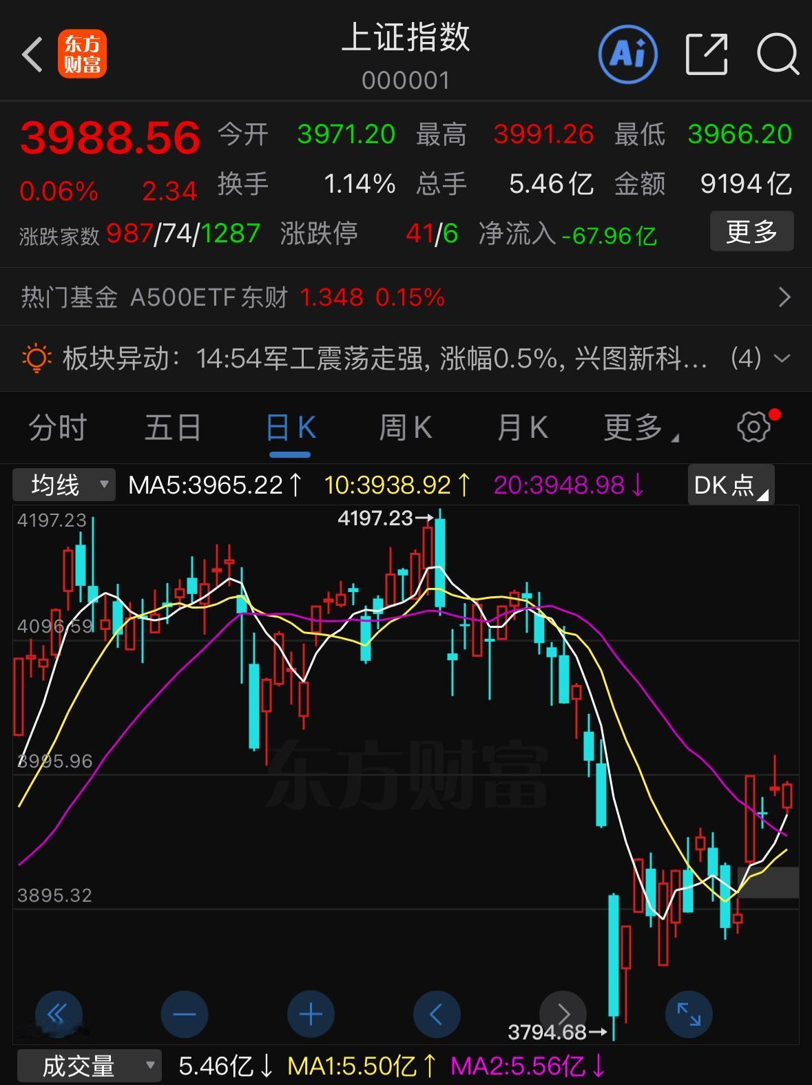 今天大盘低开高走,明天能突破4000点吗?想要直接站上4000点压力还是不小的,不过能明显看出来,不光是A股,整个亚太市场对当前地缘事件的敏感度都在明显下降,市场已经开始走出独立行情。 但这不代表资金没有避险情绪,其实近期包括今天的大资金,都在以抱团持股来替代空仓避险,盘面每天上涨的基本都是机构重点布局的几个方向,持续抱团集中在光通信、新能源以及部分大金融板块,这种行情对八成个股来说基本没有带动作用。接下来我给大家的建议还是继续等待,一是等局势尘埃落定,二是等待市场量能有效回归,以目前的量能水平想要强攻4000点本身难度就很大,另外还要等个股情绪全面回暖,现在市场只有两成板块在轮动上涨,八成板块都没有表现机会,长期这样下去,散户和游资的参与热情都会偏低,整体赚钱效应也会偏弱,等到小盘股情绪回升、微盘股指数开始走强、成交量同步放大,那才是市场情绪真正全面复苏的节点。