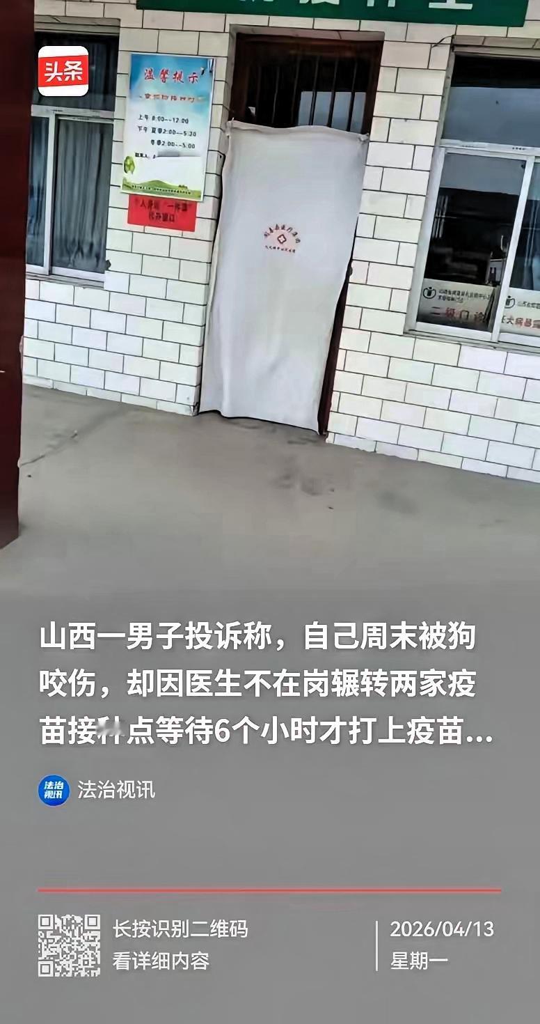 山西运城,男子被狗咬后辗转两家医院,苦等6小时才打上狂犬疫苗。 狂犬疫苗接种本就是争分夺秒的事,晚一分钟就多一分风险,可周先生遭遇的一切,实在让人寒心。中午12点被咬伤,十分钟就赶到镇卫生院,本该在岗的医生却不见人影,打电话才得知要等到下午,好不容易盼来回复,医生又直接爽约,让他继续苦等。 情急之下他赶往市医院,本以为大医院能靠得住,没想到预防科医生同样不在岗,只让他自行冲洗伤口,继续漫长等待。从中午到傍晚,整整6个小时,周先生在恐惧和焦虑中煎熬,明明是救命的疫苗,却被各种理由一拖再拖。 更让人气愤的是,周先生正常投诉维权,涉事医生、院长甚至村委人员纷纷找上门,逼着他删视频、息事宁人。出事的时候没人管,一投诉全都冒出来施压,这种双标做法,根本没把患者的生命安全放在眼里。 镇卫生院说医生因私事脱岗,市医院称可电话联系,看似都有理由,可全都站不住脚。狂犬疫苗接种门诊本就该保证全天候有人值守,这是基本的医疗职责,不管是家里有事还是孩子生病,都不能成为擅自离岗、耽误患者救命的借口。 按照相关法律规定,医疗机构未尽到诊疗义务,医务人员擅自脱岗,都要承担相应责任。医院的本职是救死扶伤,不是敷衍推诿,更不是事后打压维权者。患者遇到紧急情况求助,得到的却是无尽等待,换谁都无法接受。 这件事也暴露出基层医疗值守的漏洞,救命岗位绝不能有空窗期,不能让患者为医护人员的失职买单。维权本是患者的合法权利,不该被多方施压妥协,该追责的要追责,该整改的要整改,才能避免类似的事再次发生。 救命的事从来等不得,对于医院擅自脱岗、事后施压维权者的做法,你觉得该严肃处理吗?