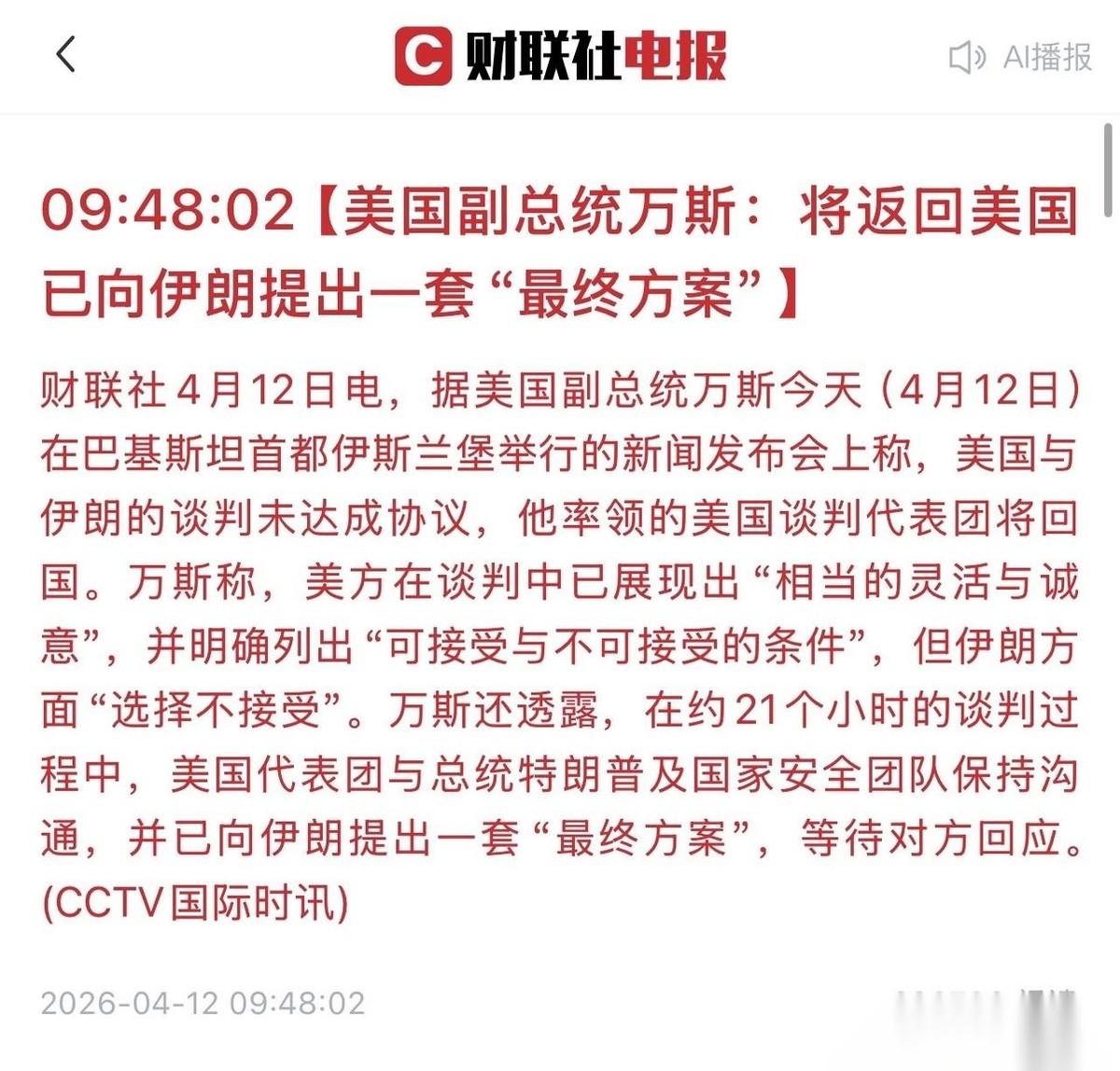 美伊谈判未达成协议,谈崩了?这其实是预期之内的事情,从谈判时间那么久来看,不太可能第一次谈就能够成功和解;后面还有哪些戏码?现在不少股民慌得不行。一看周末没签字,就觉得下周肯定要大动干戈,手里的票怕是要遭殃。网上也跟着哀嚎一片,嚷嚷着金融市场要迎重挫。 真有这么悲观? 这笔博弈账其实很好算。两边这回能坐到同一张桌子上,已经是破天荒的妥协了。大家想想当年的板门店谈判,哪次不是边打边谈拉扯好几年。 大国过招,从来就没那速战速决的剧本。 这次抠细节抠了那么久,恰恰说明两边都在探对面的底。谁也没想真掀桌子。要是铁了心撕破脸,露个脸走个过场,五分钟早散场了。 把两边拉锯当成账户缩水的借口,纯属自己吓自己。 不管短期怎么折腾,全球资本对地缘冲突的“抗体”只会越来越强,最后必然彻底脱敏。 一跌就怪大洋彼岸的局势,这思维太弱了。游资和机构就喜欢拿这种模棱两可的海外动静做文章。他们刻意制造恐慌,就是为了骗散户交出底部筹码。 人家在台上演戏,你搁台下先把自己急出内伤。这才是最大的投资败笔。 眼睛多盯盯眼前的基本面,别随便为远方的炮声买单。定力才是震荡市里唯一的护身符。对此,你怎么看?