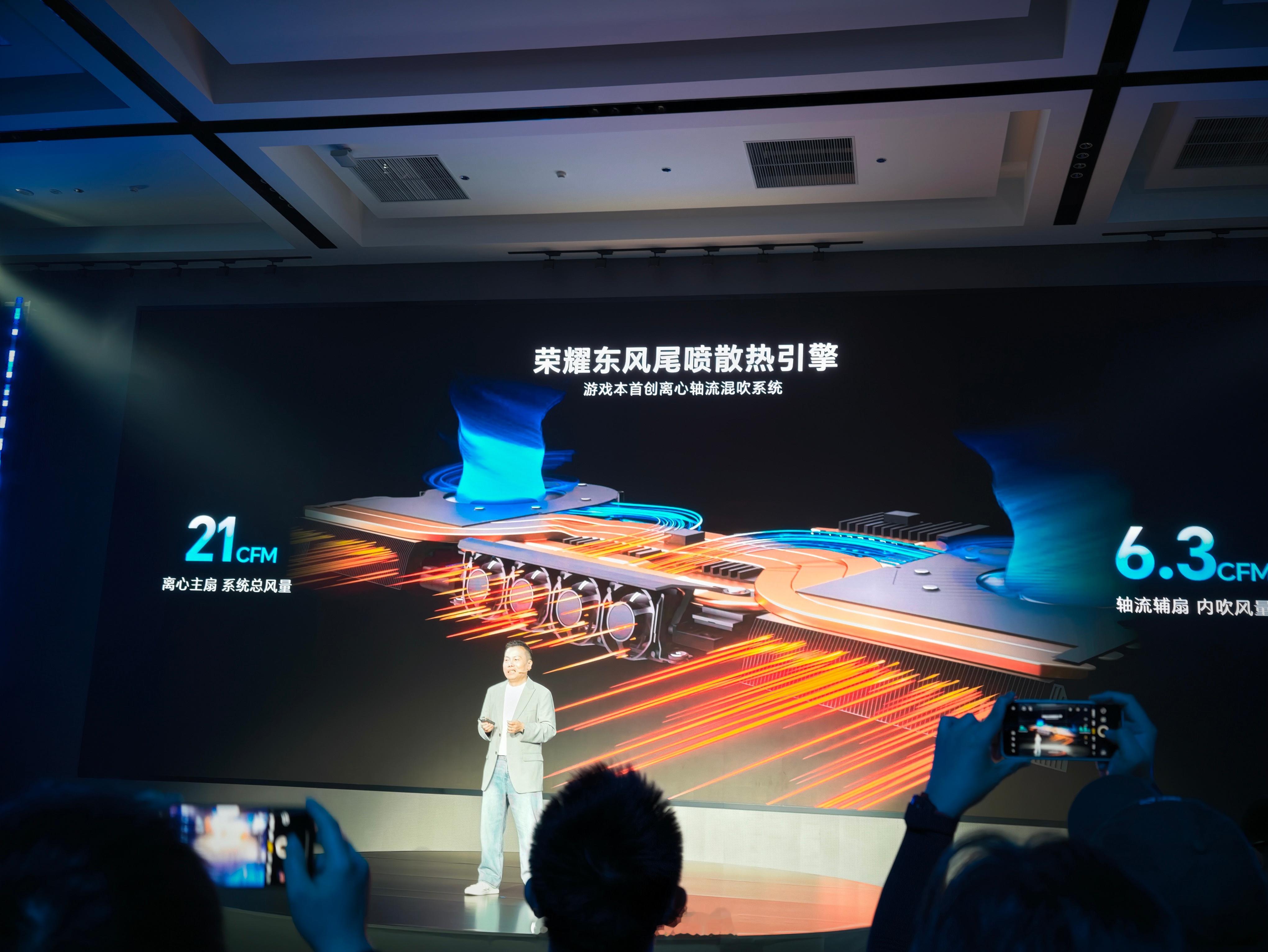 荣耀WIN游戏本首发东风尾喷散热引擎 4个高性能自研轴流风扇,配合2个强大的离心主风扇,将整机风量较传统内吹方案提升10%,提升综合整机功耗收益20W,在5070Ti显卡配置下可实现至高270W满血功率释放。