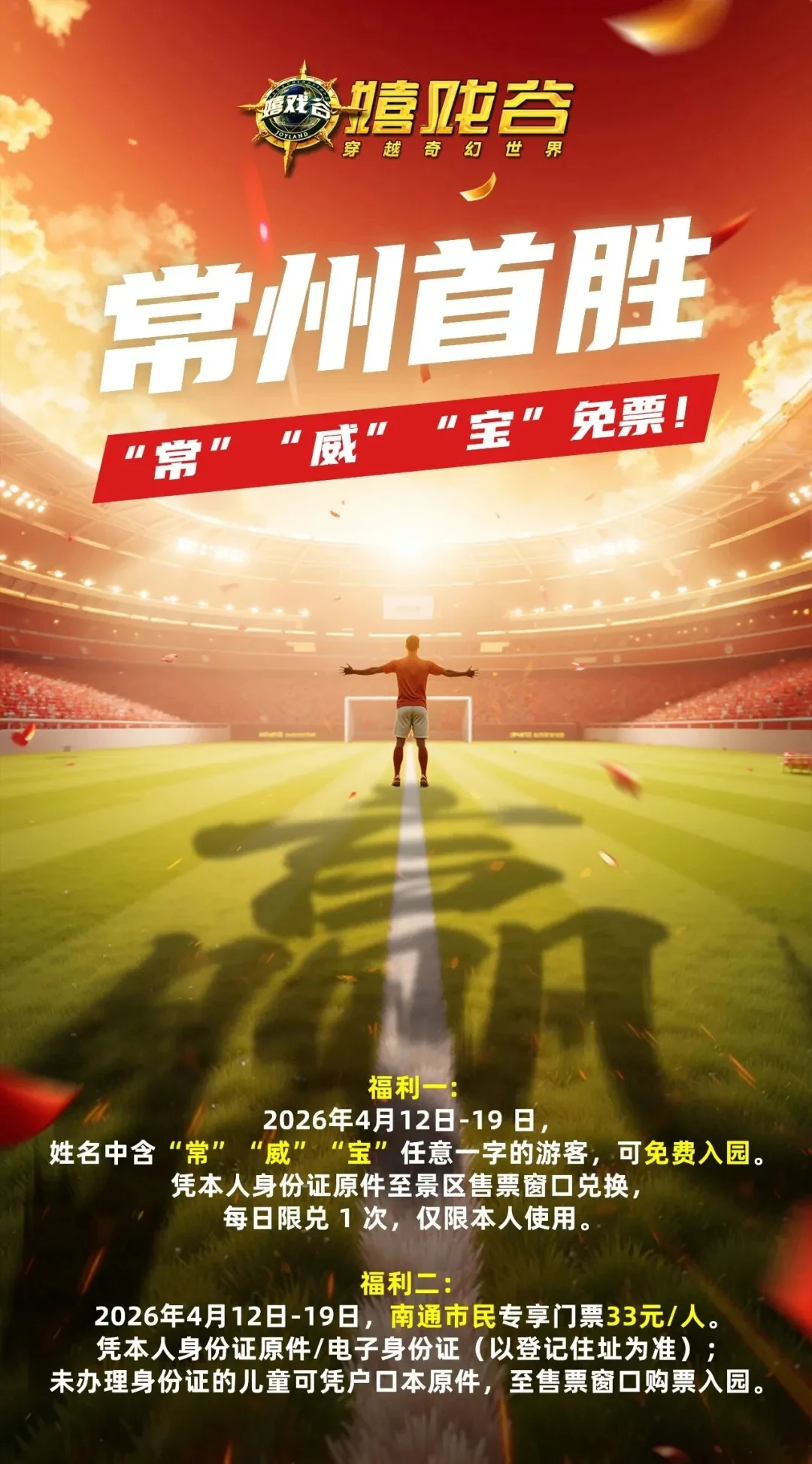 全国姓名中含“常威宝”字的游客嬉免费,此外南通市民专享门票33元/人