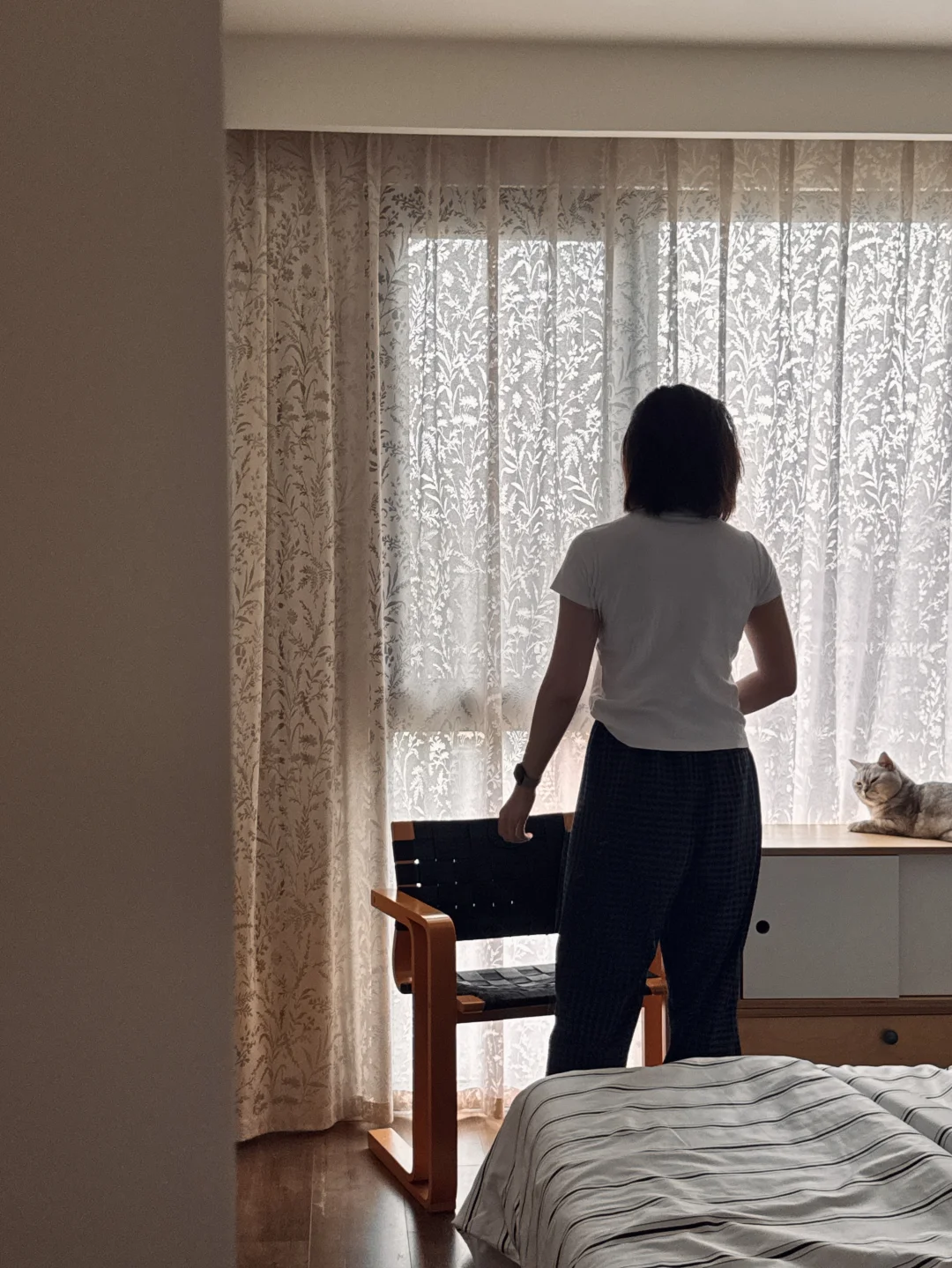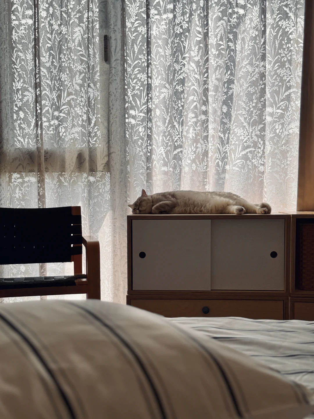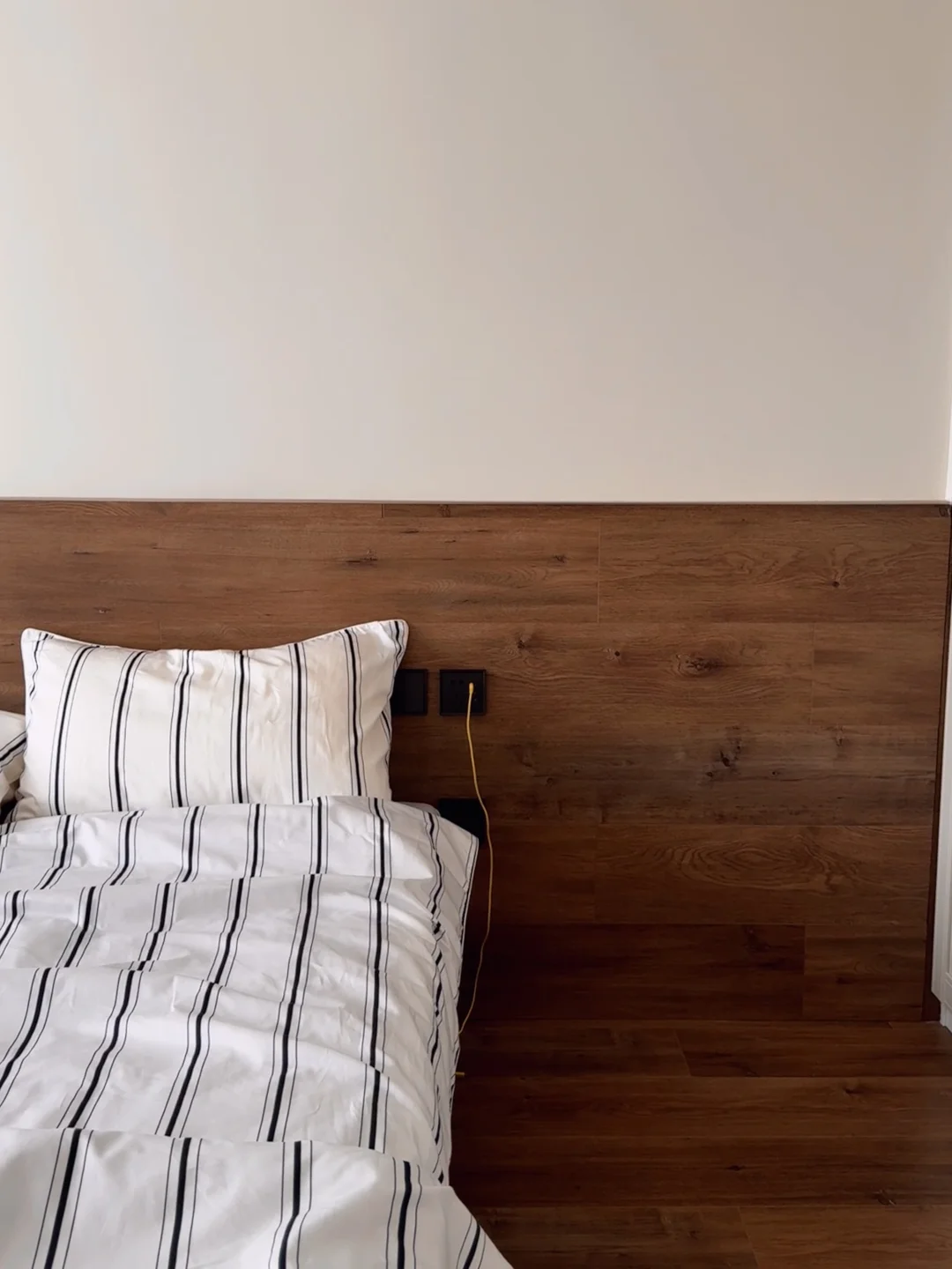 卧室虽然小小的 布置也很简单 但不耽误它是一个好睡的小卧室 甚至可能因为它太好睡 所以偶尔试图在卧室看个书啦 甚至妄想搭个小桌子练字啦 都完全不可执行🙅 只想 美美睡觉😴 🙋小卧室的装修小心思 1, 床不是越大越好 合适的尺寸充帮助分利用小卧室面积 2,地板上墙+无床头,留足床尾通行空间 3,少放一些东西 让卧室只能睡觉 会睡得更好哦 4,常换常新 好看又干净的床品会让心情upup🆙