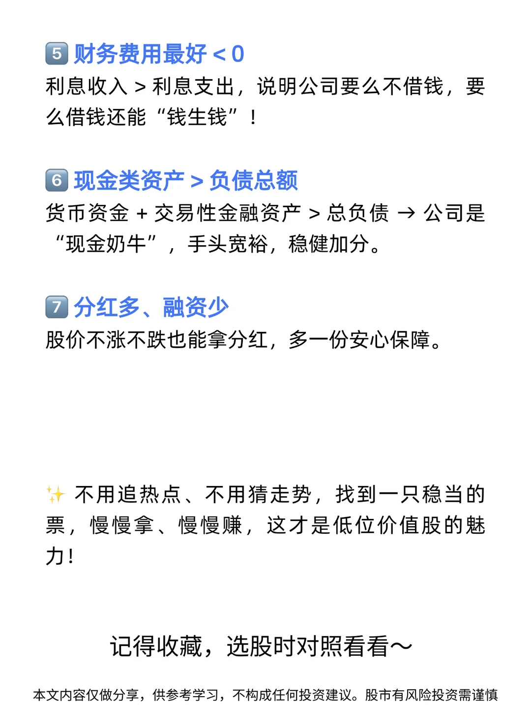 7. 看大不大方:分红多、融资少的好。