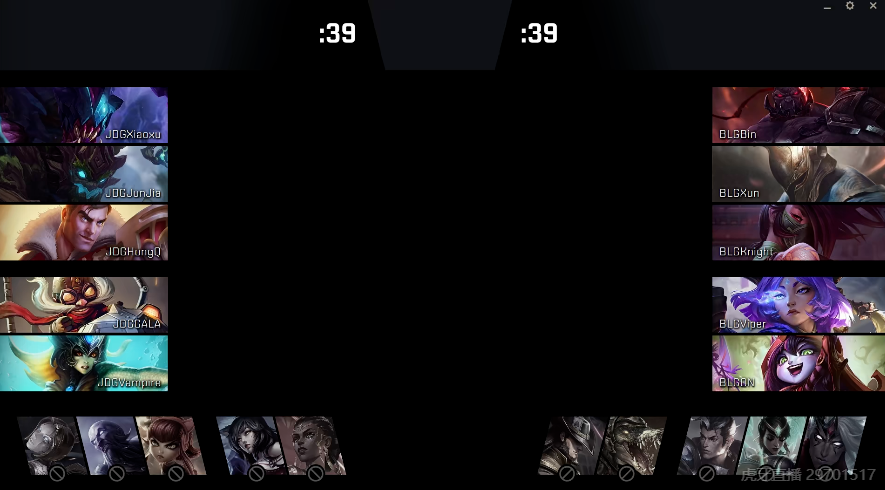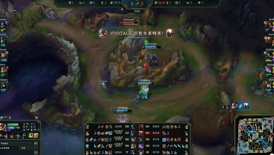 JDG选用:Xiaoxu挖掘机,Junjia大树,HongQ杰斯,GALA飞机,Vampire娜美