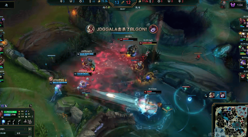 16分钟:Xun潘森开大落地被控死,JDG击杀对方中野打出零换二,飞机拿到双杀
