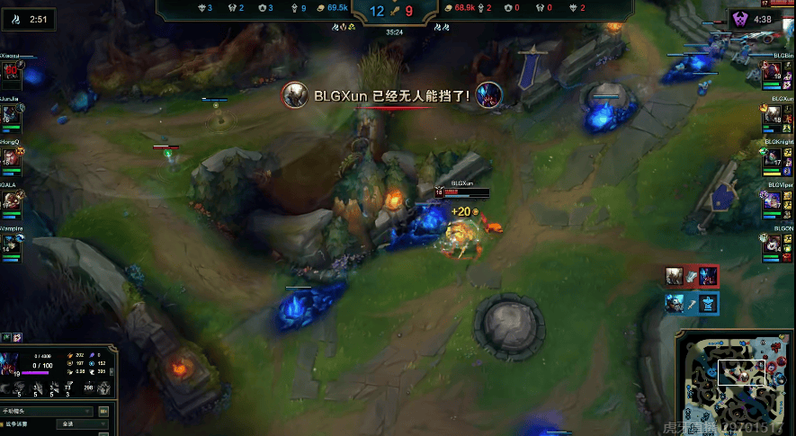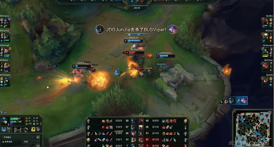 4分钟:Xun游走中路gank被Junjia反蹲,HongQ杰斯拿到双杀