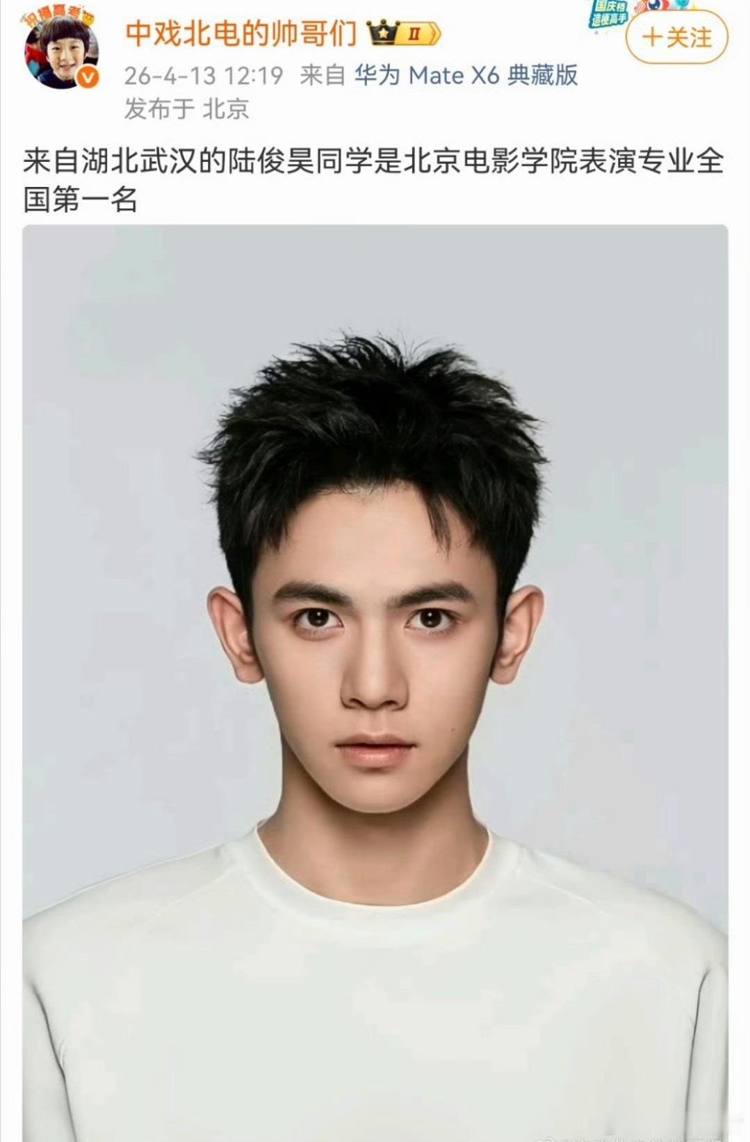 陆俊昊北电表演专业全国第一好消息:娱乐圈要来新人了坏消息:长得像AI好标准的长相