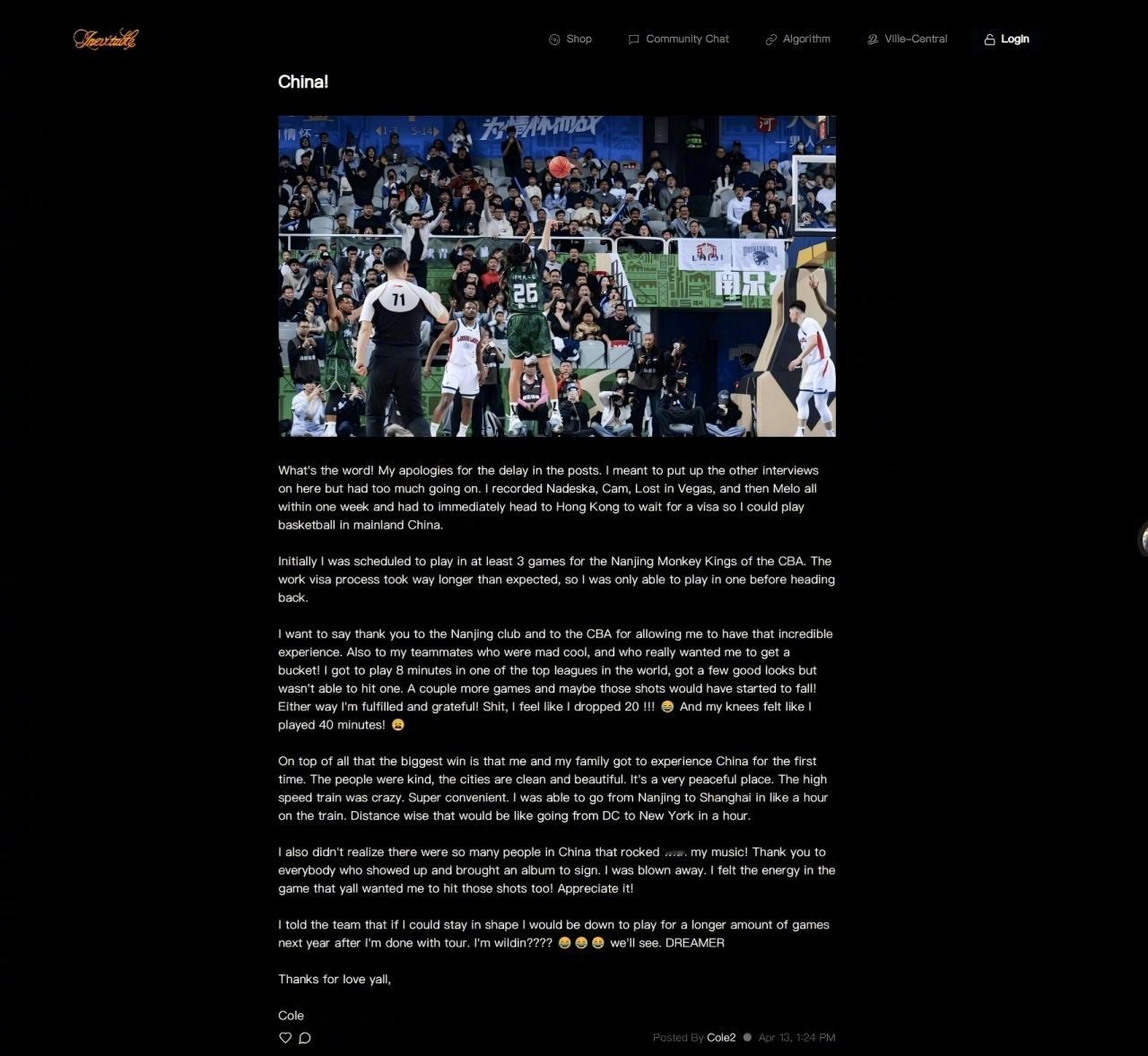 知名说唱巨星、南京同曦外援杰曼·科尔(J.Cole)在个人博客宣布,因签证和工作原因,将结束CBA生涯。原本承诺至少出战3场常规赛,作为“文化跨界+流量外援”亮相。但因工作许可(B类运动员签证)审批远超预期,他被迫在香港滞留多日等待,直到4月11日才拿到资格、赶上1场比赛,登场8分04秒,三分5中0,得到1篮板1助攻1犯规,正负值-1。虽然只打了一场,但J. Cole仍表达了对球队和联赛的感谢,以及对中国的人文也是赞不绝口!CBA