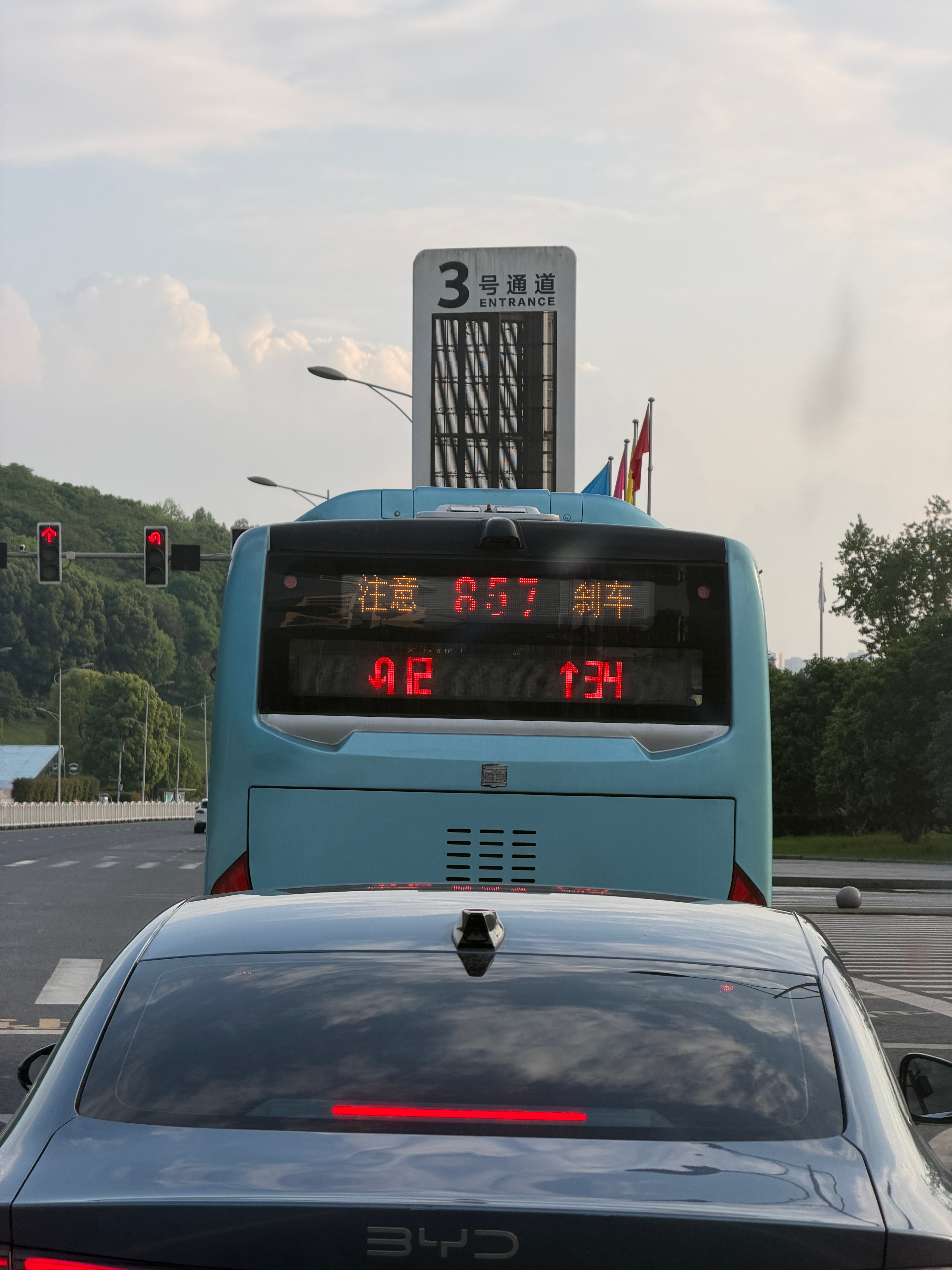 重庆公交车还是太先进了、担心后面的车看不到红绿灯读秒、直接实时同步在尾部显示屏、我记得华为ADS新功能也有这一项!