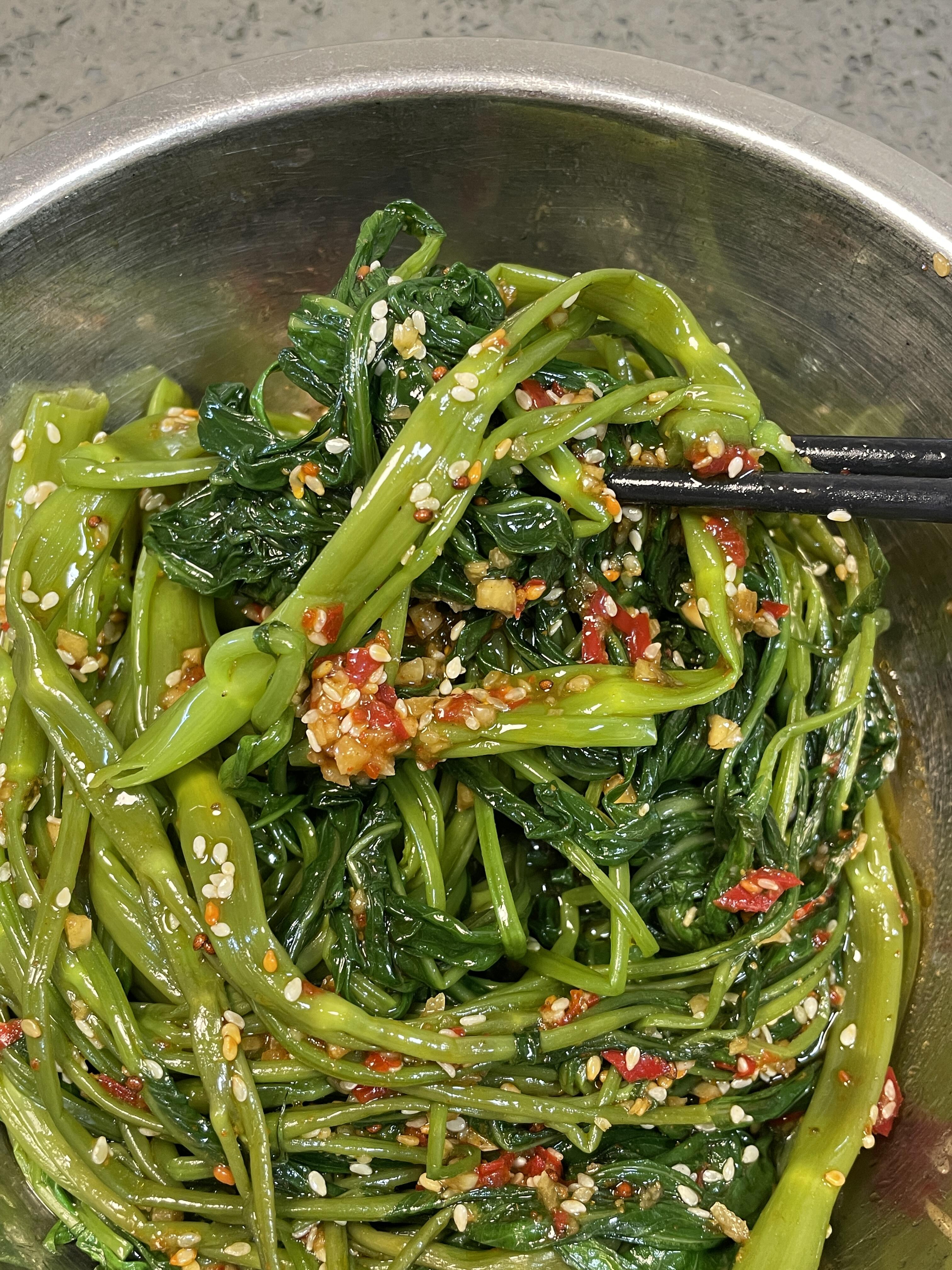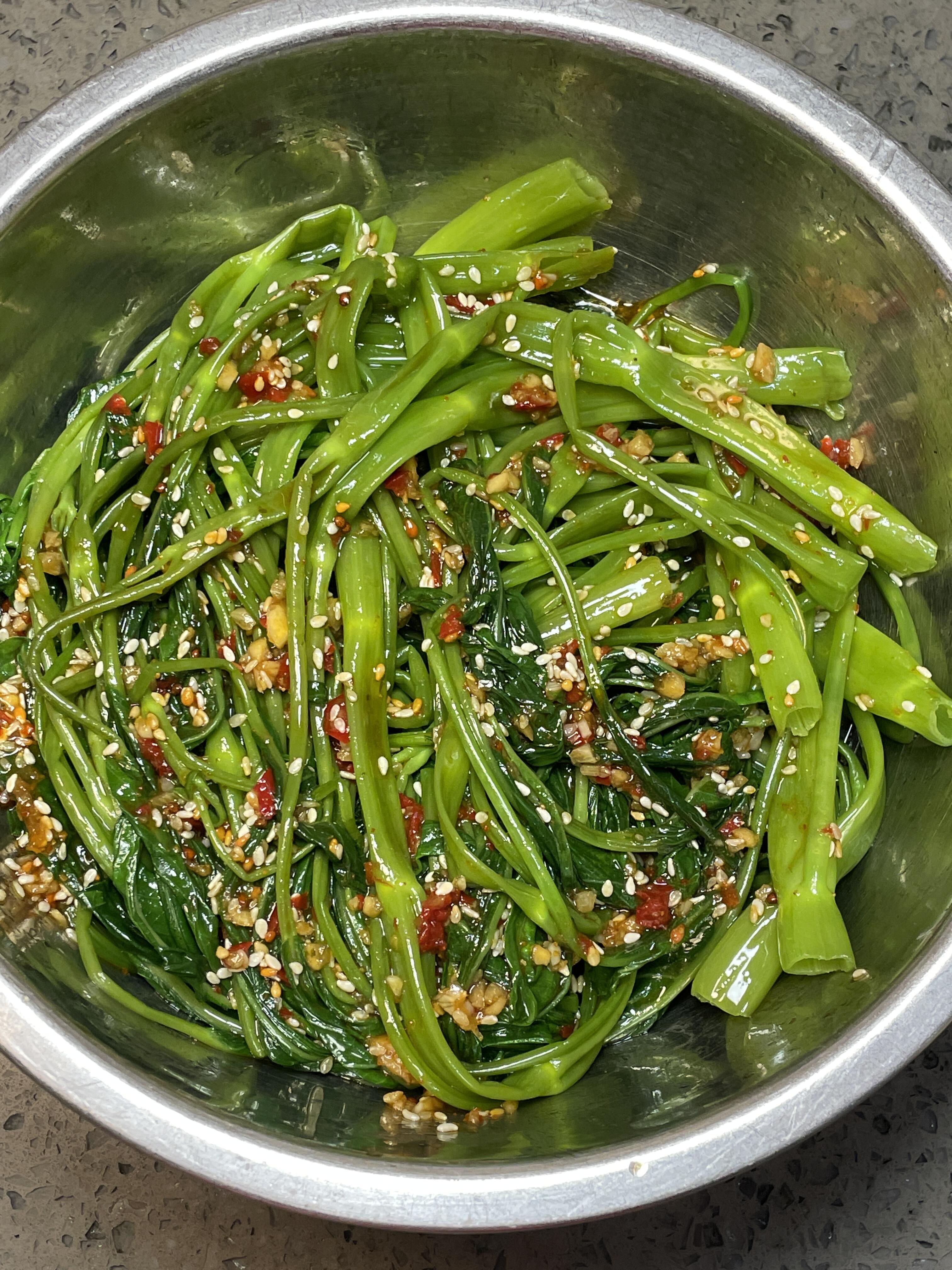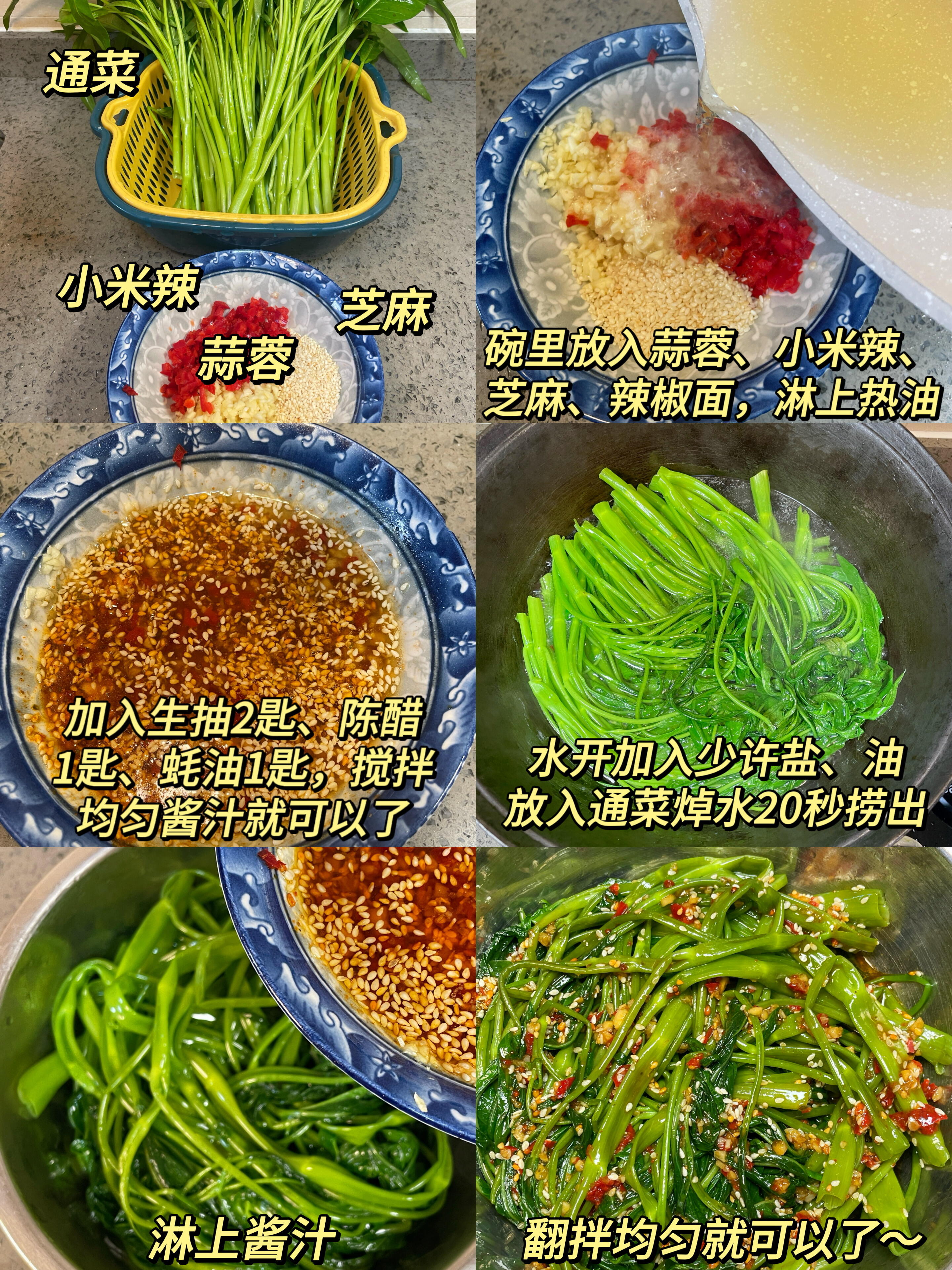 ✅ 食材准备(家常易获取,不用特意采购): 空心菜、蒜蓉、小米辣、芝麻、辣椒面、陈醋