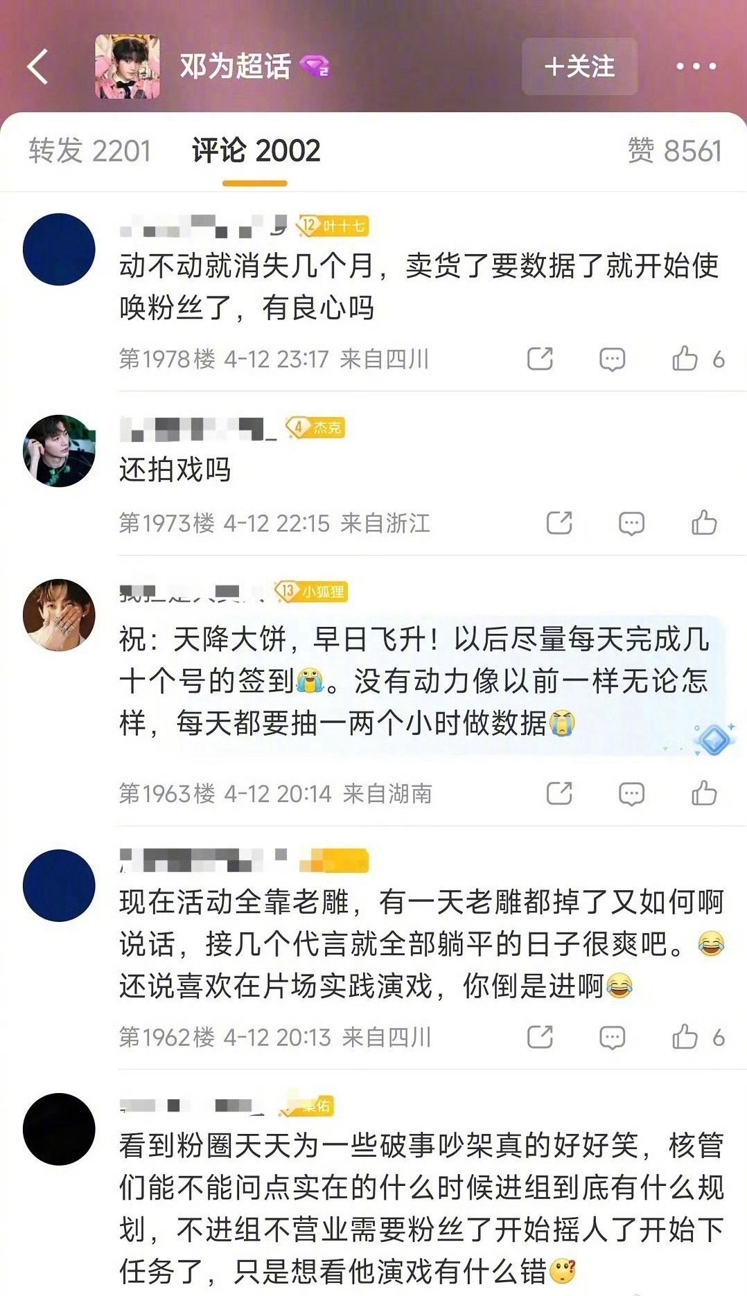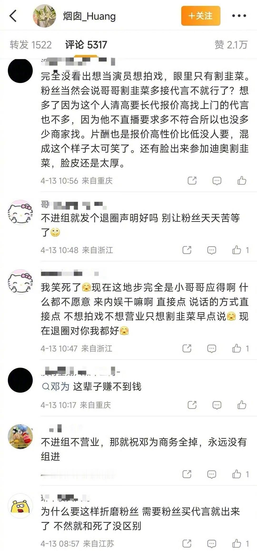 邓为粉丝指责他不营业,好多粉丝因此脱粉了…