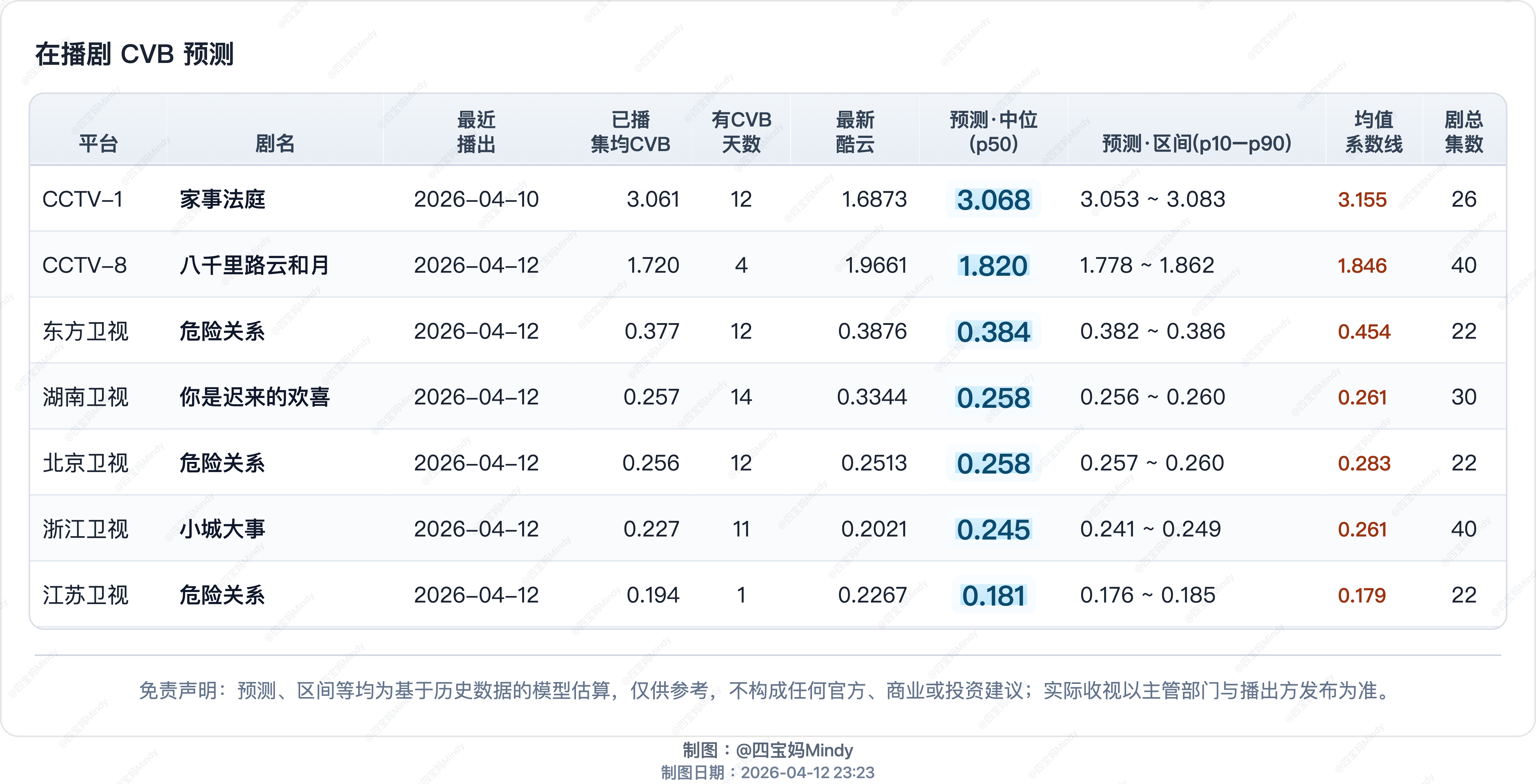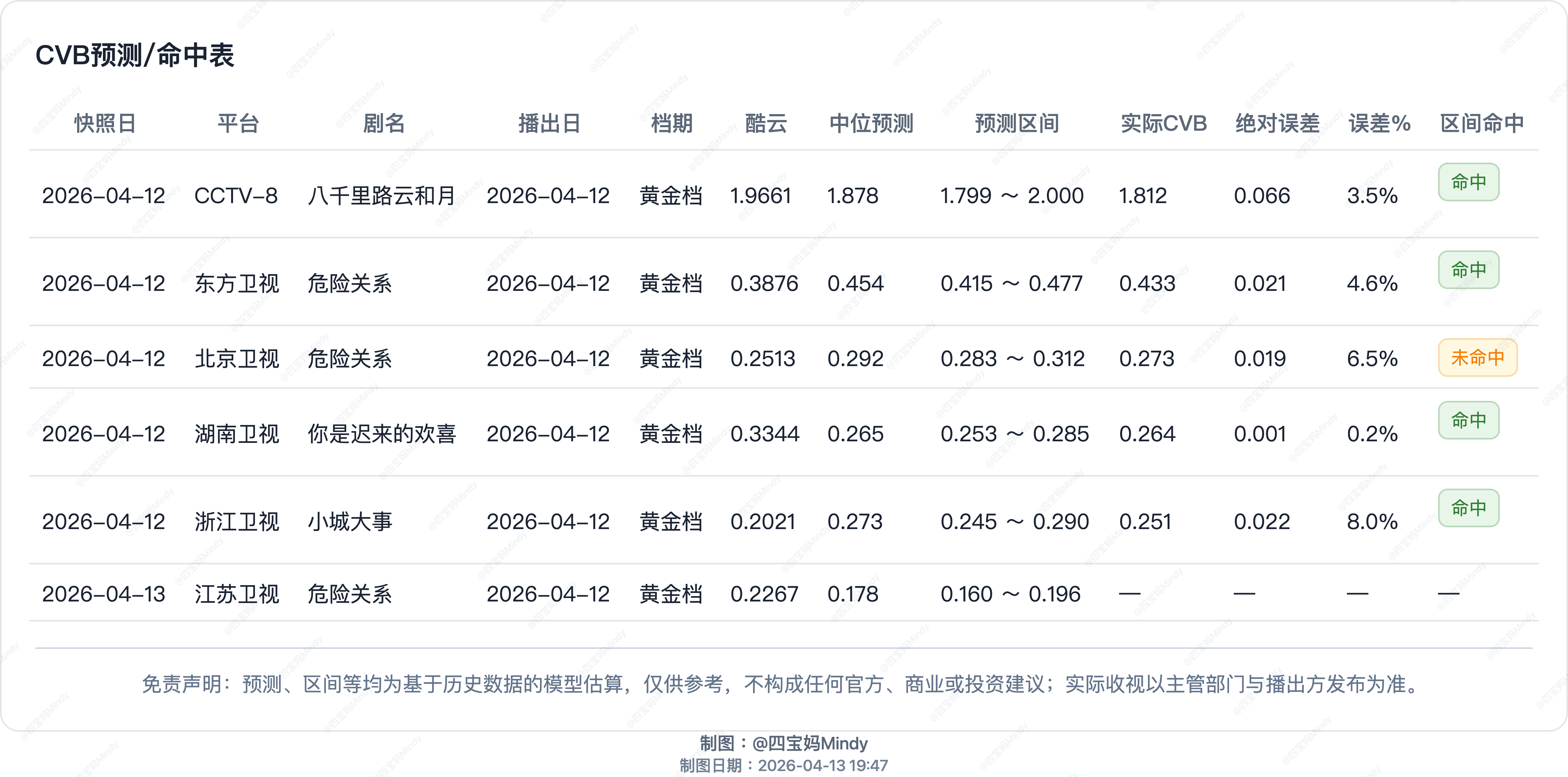《危险关系》收官预测值东方卫视 0.384 实际cvb集均0.382 位居第四北京卫视 0.258 实际cvb集均0.258 位居第三均在命中误差值内
