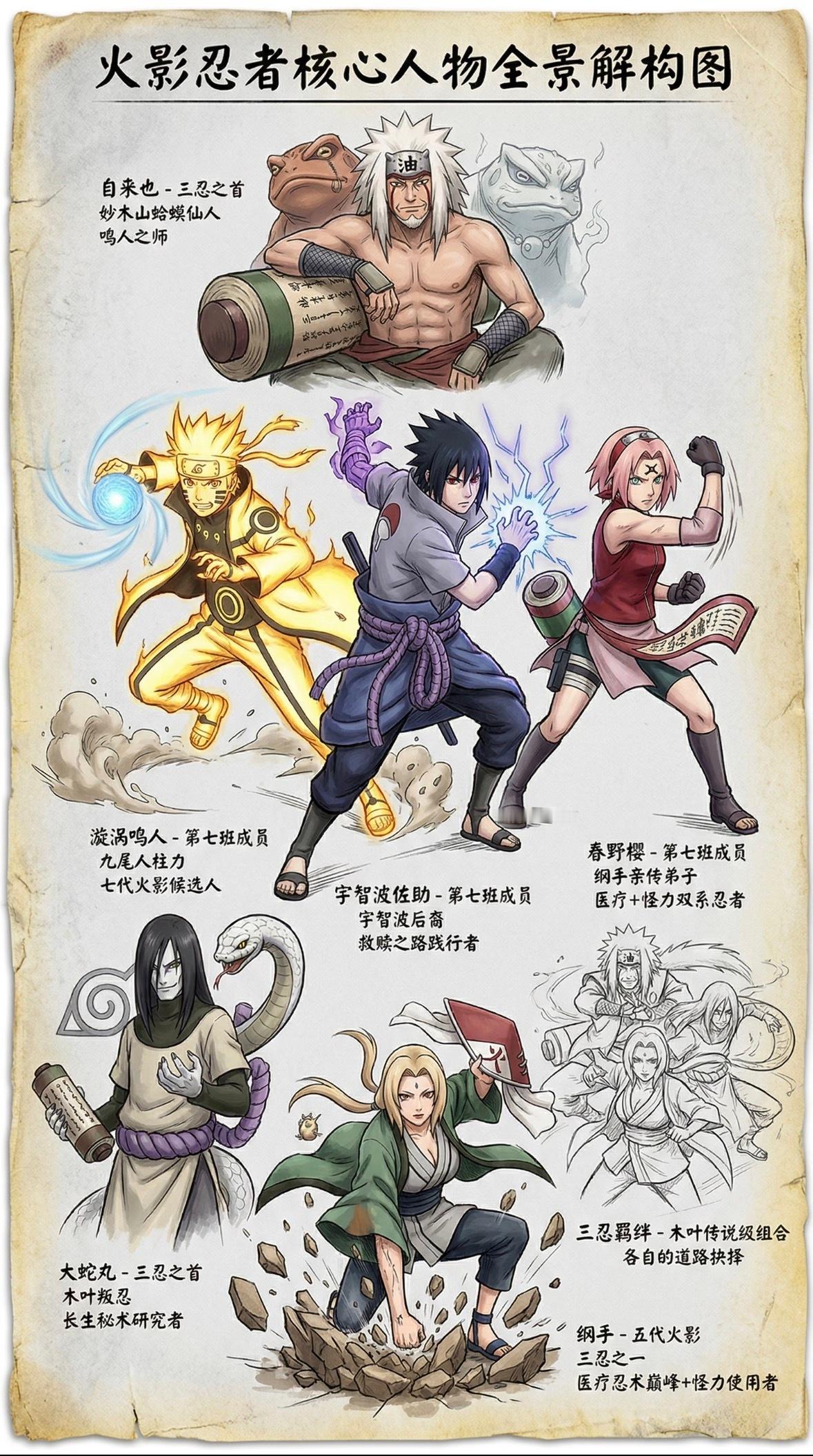 《火影忍者》核心人物秉性解析!!让我看看,是谁的青春DNA狠狠动了~旧三忍的羁绊,新三忍的传承,火影最戳人的宿命感直接拉满!动漫点评团火影忍者动漫 自来也:三忍之首,妙木山仙人,把一生都赌在了鸣人的成长上。