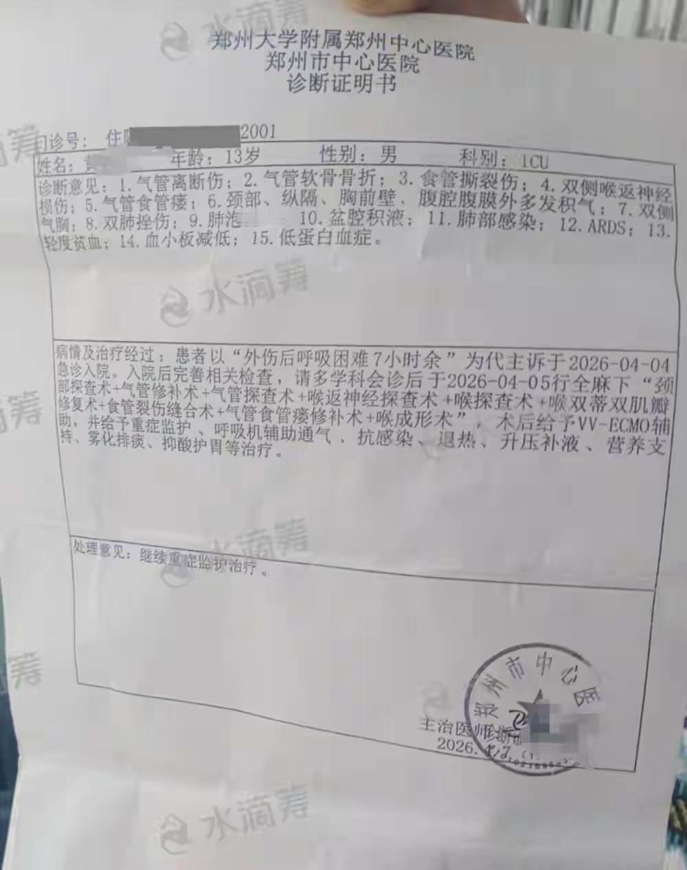 网友为遭绳锁喉重伤男孩筹款超50万元,村主任称肇事方为七旬老人,又给伤者送去2万元,律师:或构成过失致人重伤罪 这哪里是绳子?这分明是一把悬在公共道路上的“隐形铡刀”! 河南沁阳,4月4日。这本该是一个普通得不能再普通的周末,13岁的小宇像往常一样,骑着电动车去上补习班。这孩子命苦,母亲身患白血病和乳腺癌,全家就指望着他这个全校前三的优等生将来改换门庭。可谁也没想到,村道上那根横空出世的绳子,差点成了他的“鬼门关”。 那一瞬间,没有电影里的慢动作,只有残酷的物理惯性。绳子像热刀切黄油一样,瞬间割断了他的气管和食管。 你能想象那种绝望吗?一个13岁的孩子,脖子被勒开,气管断裂,连呼吸都成了奢望。他没有哭天抢地,而是用一双稚嫩的手,死死托住自己快要掉下来的脑袋,一步步跑回了家。等到父母看见时,孩子已经说不出话,只能用手指着那道触目惊心的血痕。 这画面,光是想一想,心都要碎成渣。 可更让人心寒的,是肇事者的态度。 拉绳子的是一位70多岁的同村老人,理由荒谬得让人发笑——为了打玉米图省事,不想让人过路。事后,这位老人及其家属做了什么?先是扔下1万块钱,然后就像人间蒸发了一样,记者打电话直接挂断。 1万块钱!在ICU里,这连一天的抢救费都不够。这哪是赔偿?这简直是对生命的羞辱,是对受害者家属的二次伤害! 好在,舆论的怒火不是白烧的。4月13日,村主任传来消息,肇事方又送去了2万块。虽然比起天文数字般的医疗费仍是杯水车薪,但这至少说明,在铺天盖地的指责下,他们终于坐不住了。 但这事儿,真不是给点钱就能翻篇的。 咱们得把话说明白:这根绳子,拉的不是界线,是法律的红线! 很多网友在问,老人年纪大了,是不是就能“法外开恩”?是不是就能用“我弱我有理”来抵消罪责? 绝对不行。 根据《刑法》第二百三十五条,过失伤害他人致人重伤的,处三年以下有期徒刑或者拘役。在公共道路上私设路障,且未设置任何警示标志,这不仅仅是“图方便”,这是在拿不特定多数人的性命做赌注。 律师说得透彻,如果鉴定结果构成重伤,这就涉嫌“过失致人重伤罪”。甚至有法律专家指出,如果认定行为人明知有危险却放任不管,还可能构成“以危险方法危害公共安全罪”。 别拿“无心之失”当挡箭牌。 你在村道上拉根绳,难道不知道晚上会有人骑车?难道不知道绳子细了看不见像刀刃?作为一个具备完全民事行为能力的成年人,这种最基本的预见义务都没有,那就是对生命的漠视。 再说那个“1万块挂电话”的操作,简直是教科书式的“反面教材”。如果事发后,老人一家能痛哭流涕、砸锅卖铁去救人,哪怕钱不够,人心也是肉长的,大家或许还能体谅几分。可这种“钱给够、别找我”的冷漠,直接把原本可能的民事纠纷,推向了刑事犯罪的深渊。 还有个细节值得玩味。有人说,男孩才13岁,未满16周岁骑电动车违规,是不是也有责任? 别搞错了重点。男孩违规骑行,那是行政违法,交警可以罚他家长。但这跟被绳子割断气管有因果关系吗?没有! 这就好比你走在路上没走斑马线,结果被人从楼上扔下来的花盆砸中了,难道还要怪你没走斑马线?拉绳子才是导致悲剧的根本原因,是直接切断了孩子的生路。这个锅,绝不能甩给受害者。 现在,全网爱心汇聚,60万筹款目标已经达成。这是人性的光辉,是大家不忍心看这苦命的一家坠入深渊。 但请记住,社会的善意,不能成为肇事者的“免死金牌”。 捐款是为了救孩子,不是为了替凶手买单。法律责任该追究还得追究,民事赔偿该给还得给。不能让“我老我有理”、“我穷我没错”这种歪理邪说,在农村的土路上横行霸道。 这根绳子,勒住的是一个孩子的喉咙,割断的是一个家庭的希望,挑战的是整个社会的法治底线。 我们等着看警方的通报,更等着看法律如何给这根“夺命绳”定罪。 各位读者你们怎么看?欢迎在评论区讨论。