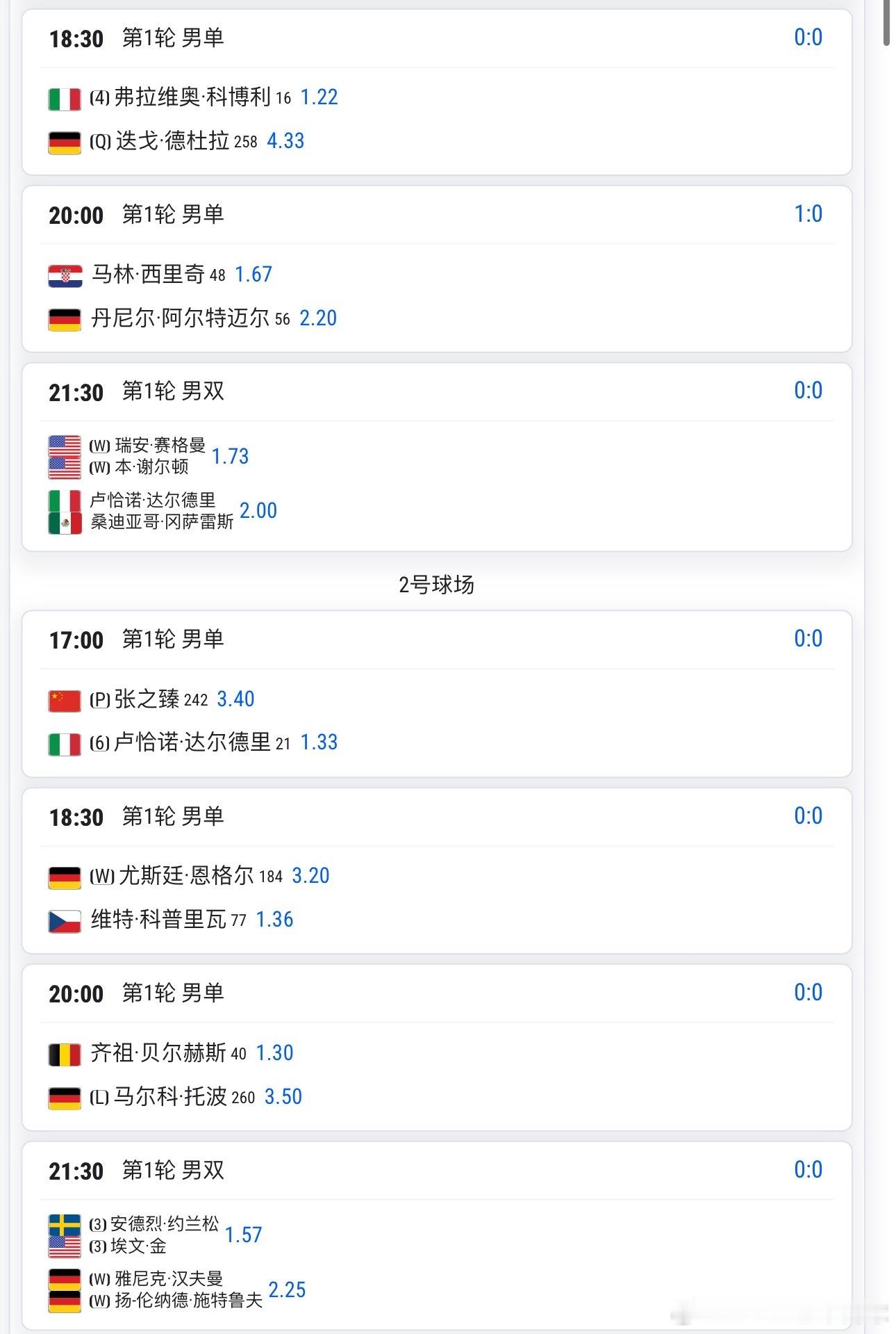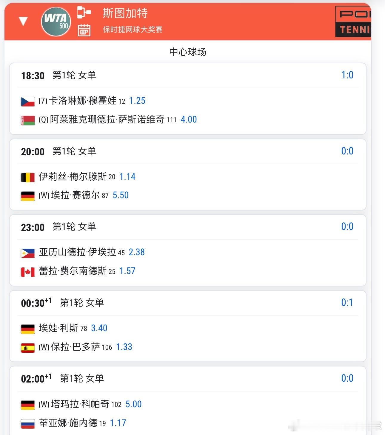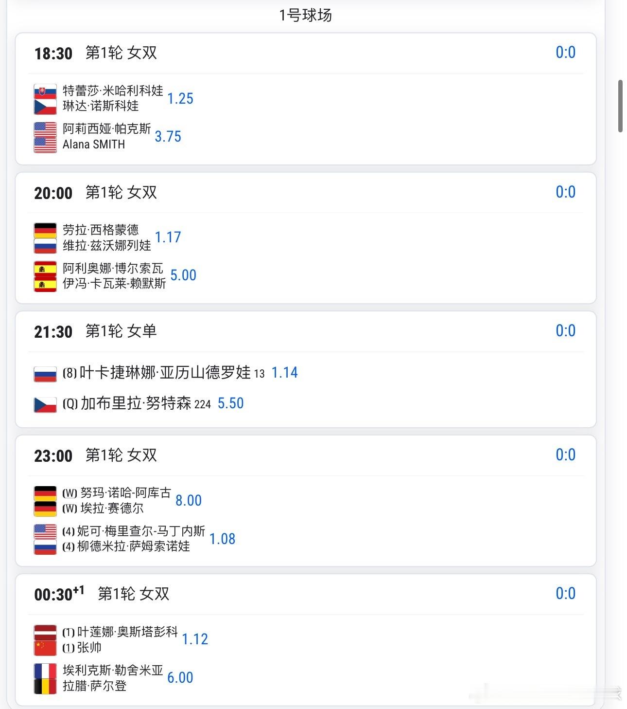 张帅🇨🇳和奥斯塔彭科的双打也要进行,其他比赛场次看下方的图片,中国军团明天都能过关否wta