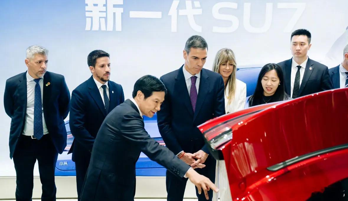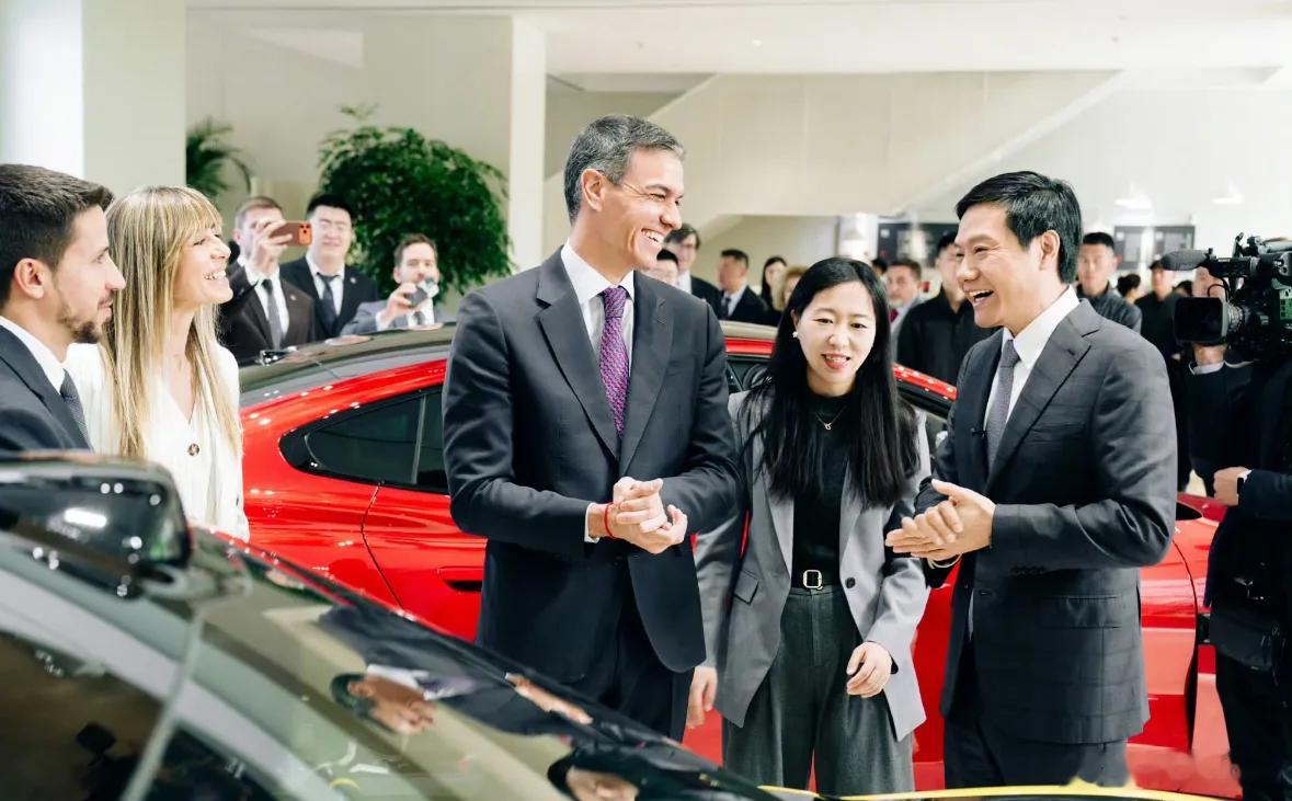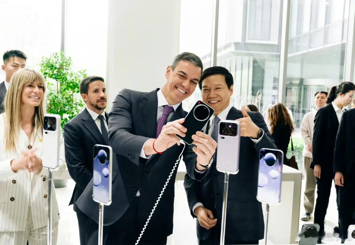 小米真的成了一张门片,佩德罗·桑切斯去了小米总部,试驾了小米Yu7,还拿出手机跟雷军自拍,雷军很高兴的跟桑切斯讲小米的功能,眼神里都散发着光。