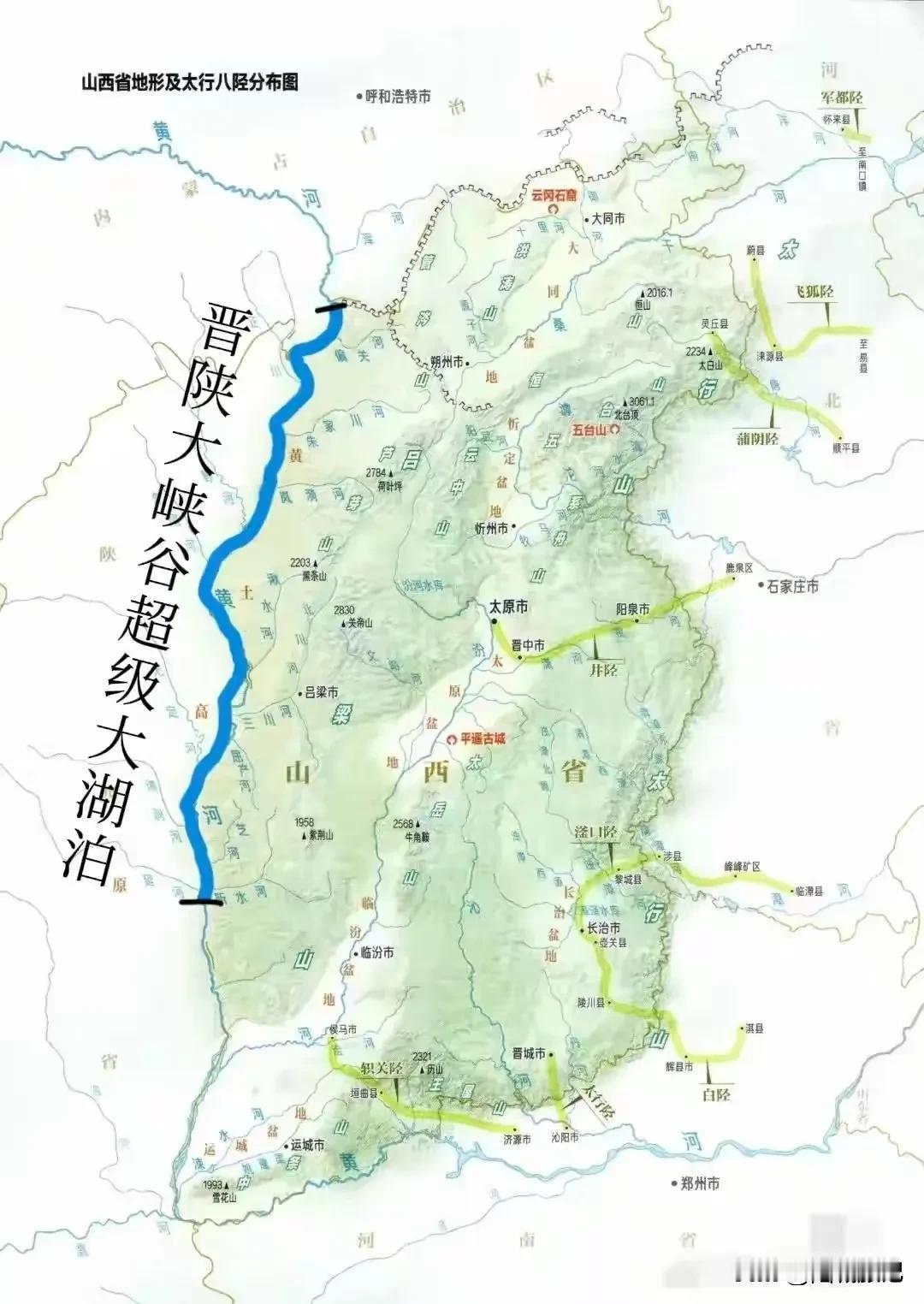 【中国山西:“晋陕大峡谷”改造工程】: ①“晋陕大峡谷”北起内蒙古托克托县河口镇,南至山西河津市禹门口。峡谷全长约为725公里,平均深度超过100米。 ②随着黄河中上游流域的黄土高原水土流失问题逐步得到解决,恢复绿化率达到67%,泥沙入河量逐年减少,未来改造“晋陕大峡谷”的超级工程也被提出。 ③“晋陕大峡谷”超级改造工程:即在晋陕大峡谷南北两段截住水源,设置拦河大坝,建设水利发电站,布局船闸枢纽,打造蓄水湖泊,铺设输水引水管道,构建疏沙去淤基地,将山西打造成为华北乃至周边省份重要的水源供应基地,解决我国北方缺水问题,完成北方缺水缺口问题。