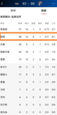 北京北汽巨星周琦真是配不上他的顶薪合同!在近日北京北汽主场以83:88输给上海久事的比赛中,周琦惨遭王哲林的完爆,以周琦在本场比赛中的表现来看,他绝对配不上他的顶薪合同。 4月12日晚,CBA常规赛焦点战在北京北汽主场打响,主队迎战上海久事,最终北京北汽以83比88惜败对手,主场吞败的同时,队内顶薪球员周琦的表现,也成了球迷热议的焦点。 这场比赛的胜负悬念一直拉到最后,北京北汽半场曾落后16分,下半场拼尽全力反扑,末节最后时刻甚至将分差追至5分,可关键时刻的连续失误,最终让球队错失逆转机会。 而作为球队内线核心、拿着顶薪的周琦,整场表现都显得有些乏力,和对面的王哲林比起来,差距实在明显。 全场下来,周琦首发出战28分钟,投篮7中5,三分球1中0,罚球4中2,最终拿到12分8篮板。 这样的数据看似不算太差,但放在顶薪球员的位置上,再对比同位置的王哲林,就显得格外刺眼。 王哲林全场高效砍下24分17篮板,不管是得分还是篮板,都几乎是周琦的两倍,内线对决中,周琦可以说是被完爆。 比赛过程中能明显看出来,周琦的发挥始终不在状态,首节北京北汽一度取得领先,可随后球队进攻断电,周琦在内线没能及时站出来,反观王哲林,和队友配合默契,接连得分帮助上海久事反超比分。 下半场北京北汽掀起反扑,队友们拼尽全力追分,可周琦在关键时刻始终掉链子,既没能在进攻端打开局面,也没能在防守端有效限制王哲林。 说白了,顶薪球员就该有顶薪的担当,尤其是在球队陷入得分荒、需要有人站出来的时候,周琦完全指望不上。 这场比赛,上海久事的弗格状态火热,一人砍下36分,而北京北汽这边,除了陈盈骏拿到16分9助攻勉强支撑,包括周琦在内的其他核心球员都表现低迷。 有人可能会说,一场比赛不能代表全部,但周琦这场的问题,不只是数据不好,更是关键时刻的责任感不足。 作为内线支柱,他的篮板保护不到位,全场8个篮板对比王哲林的17个,差距悬殊,这也导致北京北汽全场篮板比对手少7个,二次进攻得分远远落后。 进攻端,他的终结效率虽不算低,但缺乏主动性,很少主动发起进攻,大多是被动接球得分,无法给对手防线造成真正的压力。 北京北汽签下周琦,本意是想让他撑起内线,可这场比赛来看,他显然没达到预期。 现在常规赛接近尾声,北京北汽的排名岌岌可危,这场失利让球队排名下滑,后续还要面对多支强队,若是周琦不能及时调整状态,拿出顶薪球员该有的表现,不仅会影响球队的季后赛前景,也会让球迷对他的质疑越来越多。 当然,也不能否定周琦的过往实力,他也曾在赛场上有过精彩表现,只是这场比赛,他的发挥确实不尽如人意。 希望接下来他能及时反思,调整状态,毕竟拿着顶薪,就该承担起相应的责任,不辜负球队的信任和球迷的期待。 以上都是个人观点,对此您有什么不同的看法,可以在评论区留言讨论!!!