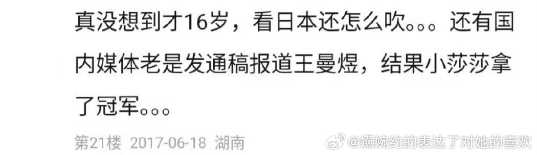 “真没想到才16岁,看日本还怎么吹。。。还有国内媒体老是发通稿报道王曼煜,结果小莎莎拿了冠军。。。”孙颖莎这才叫一鸣惊人