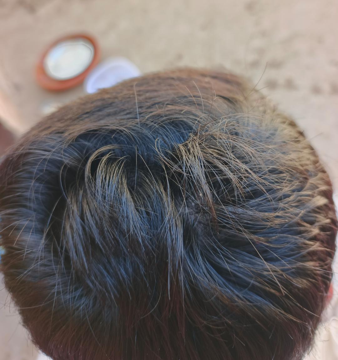这是网友展示自己头顶的双发旋,即两个发旋。这种发型特征有时会被误认为是脱发,因为发旋会让头发看起来稀疏。理发师常抱怨双发旋难打理,还有人开玩笑说这是被牛舔过。双发旋在人群中并不罕见,有人提到自己或孩子也有类似情况。