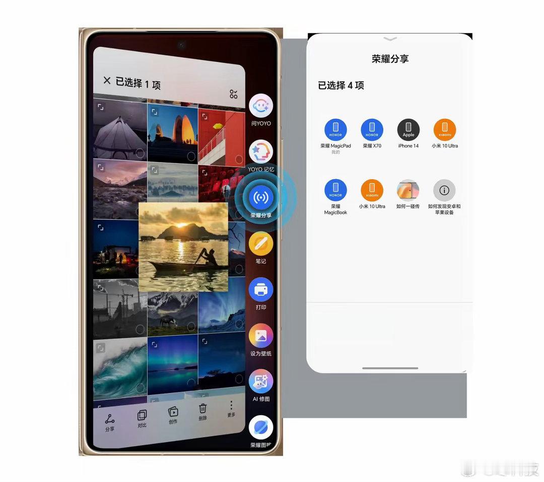 荣耀的“任意门”这是真破局。当行业还在卷苹果生态互联时,荣耀已经把目光投向了更广泛的用户。升级后的任意门,不仅能与自家设备协同,更关键的是,它能一键将图片、文件拖拽分享到几乎任何其他设备——无论对方用的是iOS、其他品牌安卓还是鸿蒙系统。这直击了多品牌设备共存的真痛点,让“互联”真正服务于所有人。科技普惠,理当如此。这波操作,值得一个点赞,也值得友商们参考。