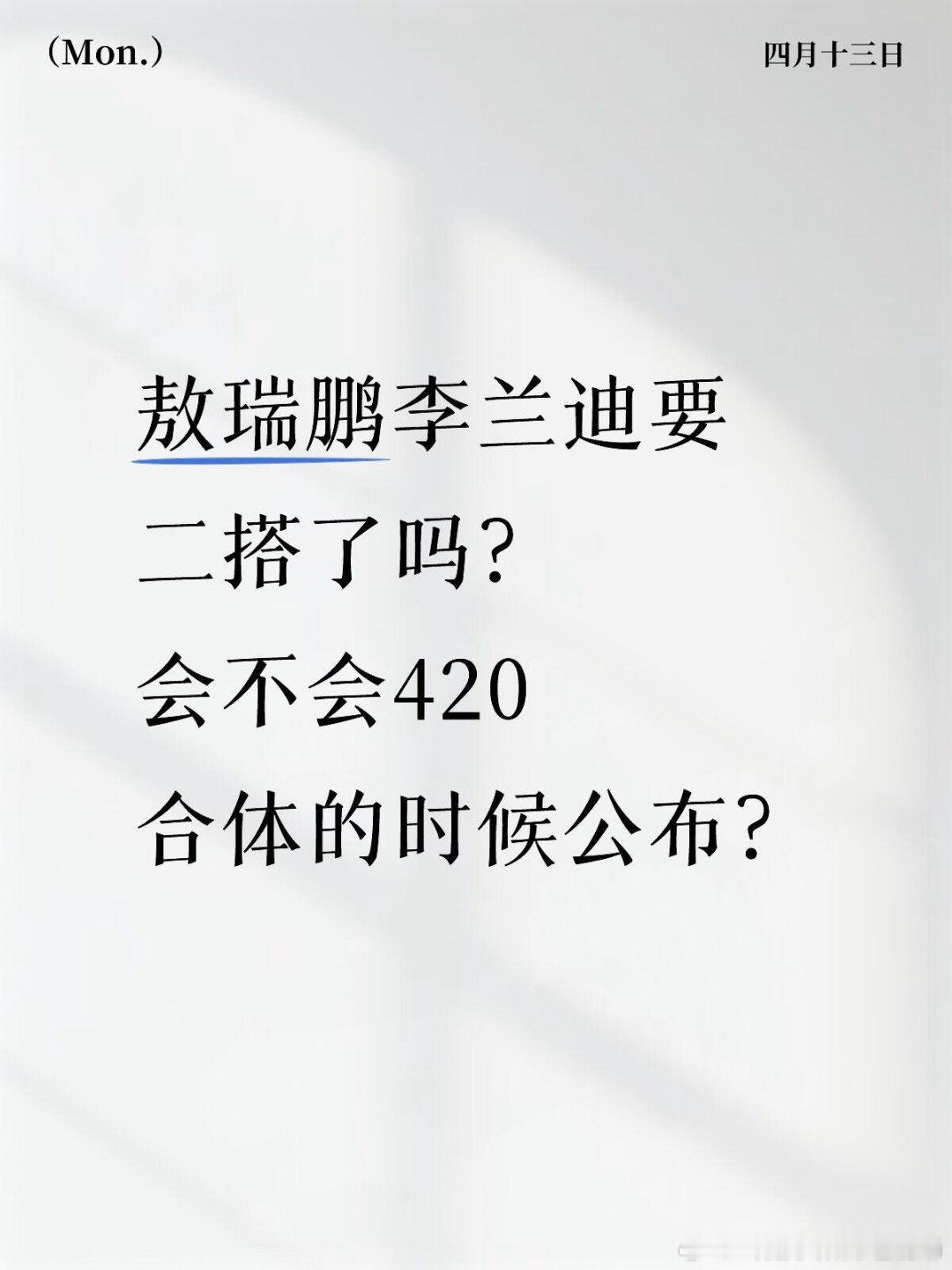 辛迪瑞拉二搭了吗?敖瑞鹏李兰迪要二搭了吗?会不会420合体的时候公布?