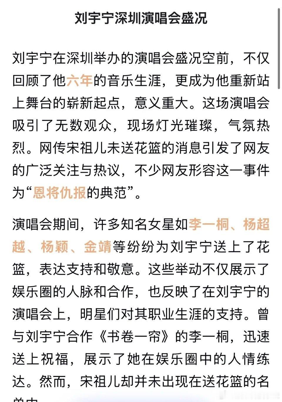 宋祖儿为啥没来刘宇宁的演唱会了?