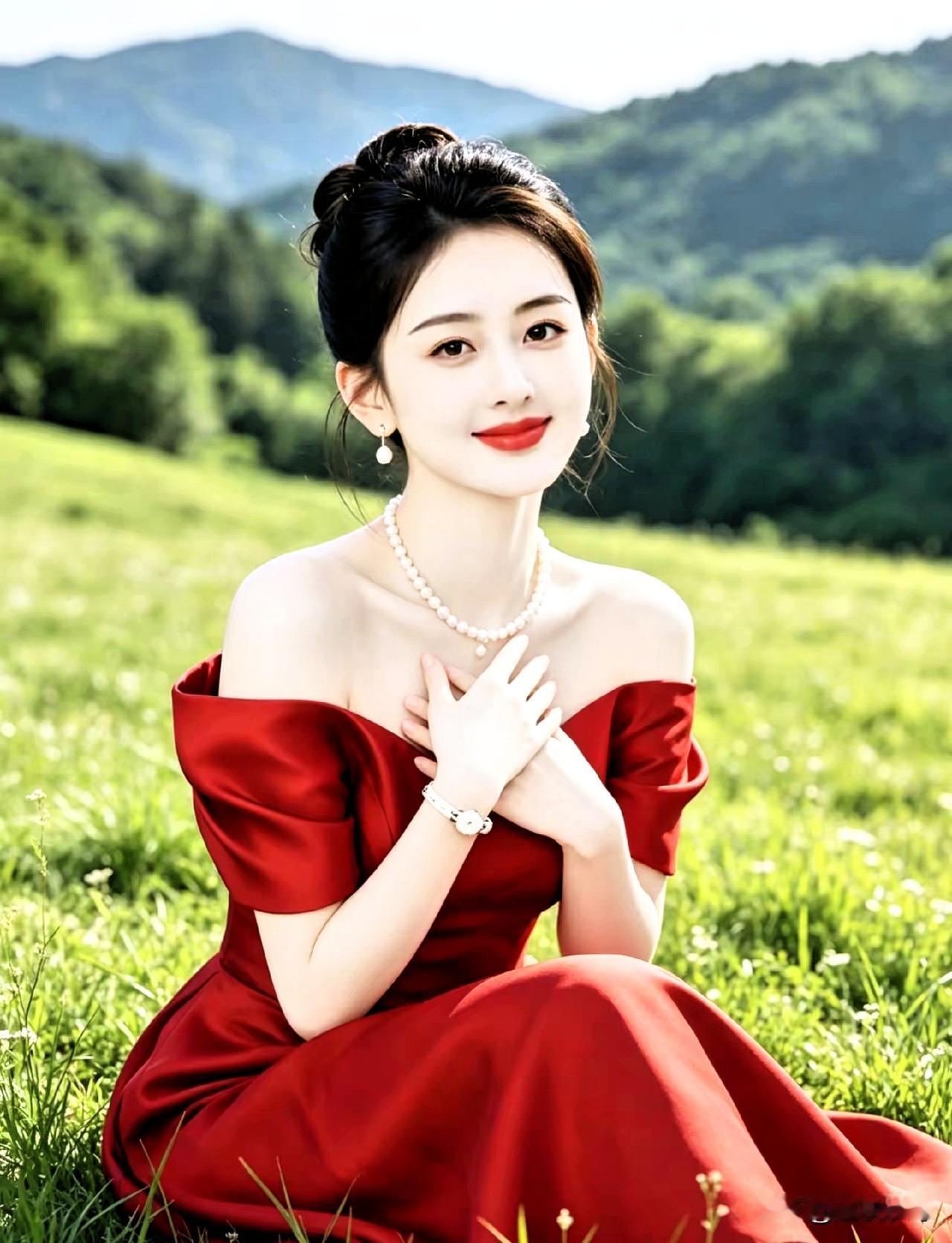 复古风华,红唇与花海相映成趣,尽显东方韵味。