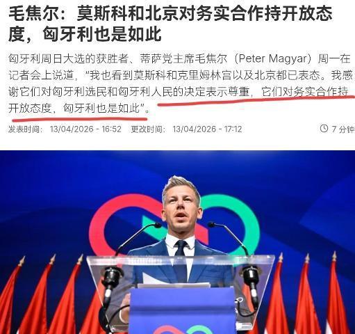 第一时间就对中国喊话了!在击败欧尔班之后,蒂萨党主席毛焦尔·彼得对我们喊话了!4月13日,根据法新社报道,匈牙利周日大选的获胜者、蒂萨党主席毛焦尔在记者会上表示,我看到克里姆林宫以及北京都已表态。我感谢它们对匈牙利选民和匈牙利人民的决定表示尊重,它们对务实合作持开放态度,匈牙利也是如此。 这个消息一出,国际政坛都在紧盯后续发展。要知道,这次匈牙利大选可是打破了16年的政治格局——执政16年的“欧洲刺儿头”欧尔班正式承认败选,毛焦尔领导的蒂萨党以53.69%的得票率横扫国会,拿下138个议席,赢得毫无悬念。一个刚上台就主动对华释放善意的新政府,背后藏着的其实是匈牙利无法回避的现实考量。 毛焦尔的喊话绝非空穴来风,而是基于中匈多年实打实的合作基础。就在大选前一个月,匈牙利外长还在公开夸赞中资的贡献,提到华朔科技在匈牙利的二期项目投资800亿福林,专门生产新能源汽车再生铝零部件,能创造1000多个就业岗位。更不用说中联重科刚在3月开业的智能高机工厂,已经成为中匈产业链融合的新标杆。这些项目不是口号,而是实实在在的税收和就业,新政府再想调整政策,也不能无视这些既得利益。 但大家也得看清,毛焦尔的“务实合作”和欧尔班时代的“特殊友好”已经不是一回事了。这次蒂萨党能赢,核心承诺就是修复与欧盟的关系,解冻被冻结的170亿欧元资金——这笔钱相当于匈牙利年度GDP的10%,对解决高通胀、财政赤字来说就是“救命钱”。而欧盟的条件很明确:不仅要推进司法改革、反腐等27项要求,还得在涉华、对俄政策上跟欧盟保持一致。 这就意味着,未来中匈合作要换个玩法了。毛焦尔早就批评过欧尔班“过度依赖中资”,新政府会对所有中资项目进行全面评估,重新谈判合同条款,要求完全符合欧盟的环保、劳工和知识产权规则。简单说,之前中资能享受到的9%低税率、快速审批通道这些“超VIP待遇”可能要没了,以后得在欧盟统一规则下公平竞争。 不过大家也不用过度担心“脱钩”,经济绑定的韧性没那么容易打破。数据显示,2024年中国已经是匈牙利最大外资来源国,中资占其外资总量的32%,光新能源产业链就创造了超2万个就业岗位。宁德时代、比亚迪这些企业的工厂,已经成了匈牙利跻身欧洲新能源汽车产业领头羊的关键。新政府再想“回归欧洲”,也不可能自断臂膀,把这些能带动经济的优质项目赶走。 中方的回应也很冷静务实。中国外交部13日就明确表态,愿在相互尊重、互利共赢的基础上,同匈牙利新一届政府加强合作。这背后其实是早有准备——面对可能的政策调整,中方已经在指导在匈中资企业适应欧盟规则,同时深化与其他中东欧国家的合作,分散潜在风险。毕竟对中国来说,匈牙利的战略价值不仅在于双边贸易,更在于它作为中东欧“17+1”合作机制的重要节点。 再看毛焦尔提到的克里姆林宫,态度就微妙多了。克里姆林宫发言人佩斯科夫虽然表示尊重匈牙利人民的选择,但明确说不会向“不友好国家”的领导人发祝贺,还强调匈牙利支持对俄制裁。这也能理解,蒂萨党早就明确反对俄罗斯对乌特别军事行动,承诺会放弃欧尔班时期的否决权,配合欧盟对俄制裁。但有意思的是,匈牙利74%的天然气和86%的石油都依赖俄罗斯进口,还没有LNG接收站,想快速脱钩根本不现实。所以毛焦尔也只能说“务实合作”,不敢把话说死。 说到底,毛焦尔刚上台就对华喊话,本质是一场平衡术。他要给欧盟交差,不能再像欧尔班那样当“欧盟异类”;但又不能丢掉中国投资这块肥肉,毕竟民生和经济才是新政府站稳脚跟的根本。对中国企业来说,这意味着未来在匈牙利投资要更注重合规性,比如提高欧洲本地采购比例、适应环保要求,过去靠特殊政策红利的时代已经结束了。 但从长远看,中匈合作的基本面没改变。匈牙利需要中国的投资和技术来巩固新能源产业优势,中国也需要匈牙利这个欧洲门户拓展市场。毛焦尔在记者会上还特意提到“很高兴访问北京,也欢迎中国领导人到访”,这已经释放了积极信号。只要双方都保持务实态度,在欧盟规则框架内找到共赢空间,中匈合作就不会因为政局变动而中断,反而可能进入更成熟、更可持续的新阶段。 这场政坛变动也给我们提了个醒:国际合作从来不是一成不变的,只有适应规则变化、保持自身竞争力,才能在复杂的地缘政治格局中站稳脚跟。而毛焦尔的喊话,正是这种务实共赢逻辑的最好体现。