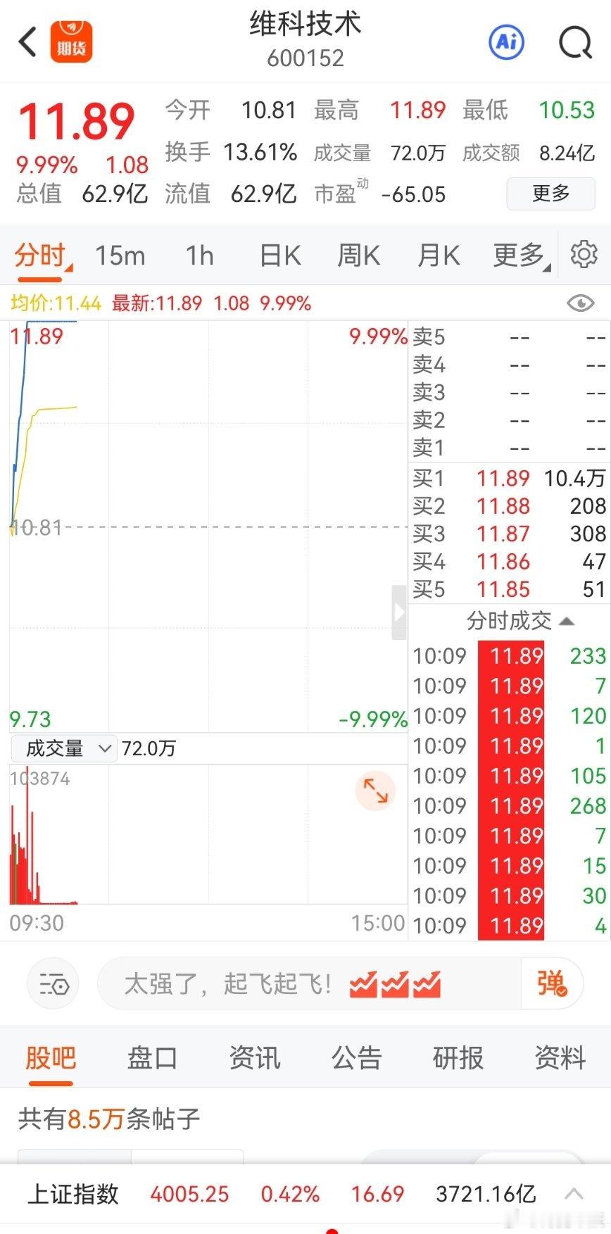 喜报,昨天的澄星股份目前盈利5个点左右,继续拿好,早上的维科技术涨停