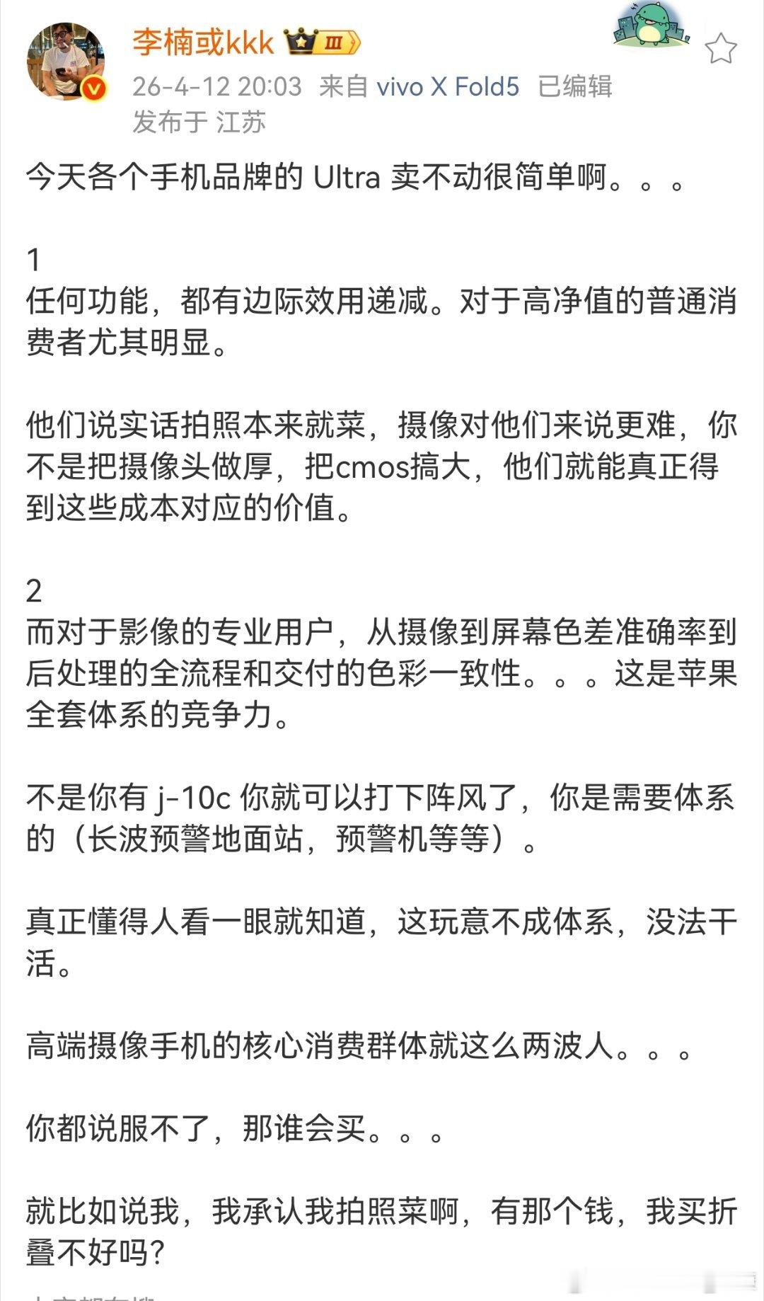 突然之间舆论,各个手机厂家Ultra卖不动,有点奇怪。