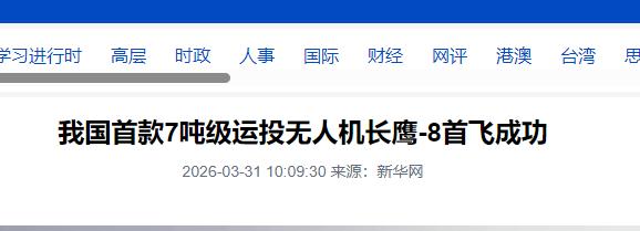 中国国防部发表声明, 4月9日,中国国防部例行新闻发布会上,有记者提问,国产货运无人机“长鹰-8”首飞成功,台湾岛内舆论纷纷议论,说这款无人机可能会成为解放军新的反航母利器,询问国防部对此有何回应。 张大校一点没绕弯子,直接把话挑明了:我们比谁都爱台海和平,但谁要是想把台湾分裂出去,那咱们绝对不答应,也绝对不会坐视不管。 看对岸那一惊一乍的样子,我就纳闷了,他们到底在怕什么?一款拉货的无人机,就能让某些人坐立难安、整宿睡不着觉,这说明他们心里虚到了什么地步。 其实,这种紧张也不是没道理。“长鹰-8”有两个最让对手头疼的本事。一是能快速换装,二是造价实在是便宜。 你想,现代打仗,要是对方拿几百万一颗的防空导弹,来拦咱们成群结队、像白菜价一样的无人机,那在战术上得有多被动?在钱袋子上更是耗不起。 反观对岸,买东西全靠外部供应,结果呢?交货时间一拖再拖。大量的采购订单面临严重的交付延迟,原本计划入列的66架F-16V战机至今无果,导弹、鱼雷等关键装备的到货时间也在不断推后。这种“买来的防务”,在关键时刻最缺乏的就是自主保障。 现在的台海,早就形成了一个严密的立体封控体系。歼-20实现了常态化巡航,东风-17具备了高超音速突防手段,而“长鹰-8”则补齐了远程无人投送的这一块拼图。 这种掌控力,在2022年那次大家都知道的大动作里就证明过了。当时外面的航母主动往后撤了几百公里,为啥撤?因为人家心里明白,咱们手里的家伙事是真能精准锁定的。 其实,“长鹰-8”最厉害的地方还不是它能拉几吨货,而是它全身上下,从发动机到飞控系统,全是咱们自己造的。 想造多少造多少,想怎么改怎么改。这才是让某些人真正睡不着的原因。一两架无人机不可怕,可怕的是整个国家的工业机器开动起来,那种产能简直就是降维打击。张大校那句“反制手段会越来越丰富”,说的就是这个硬道理。 这种“手段多”,背后是扎扎实实的技术进步。当咱们的大批物资能精准送到位,当咱们的封锁圈越划越大,那些搞分裂的念头,在物理层面上就彻底没戏了。 说到底,台海的和平不是靠嘴皮子求来的,而是靠像“长鹰-8”这种硬家伙撑起来的。咱们不惹事,但绝对不怕事。只要手里有家伙,心里就有底。“长鹰-8”的首飞,就是这种底气的最好证明。 信息来源:《我国首款7吨级运投无人机长鹰-8首飞成功》,新华网,2026年3月31日。