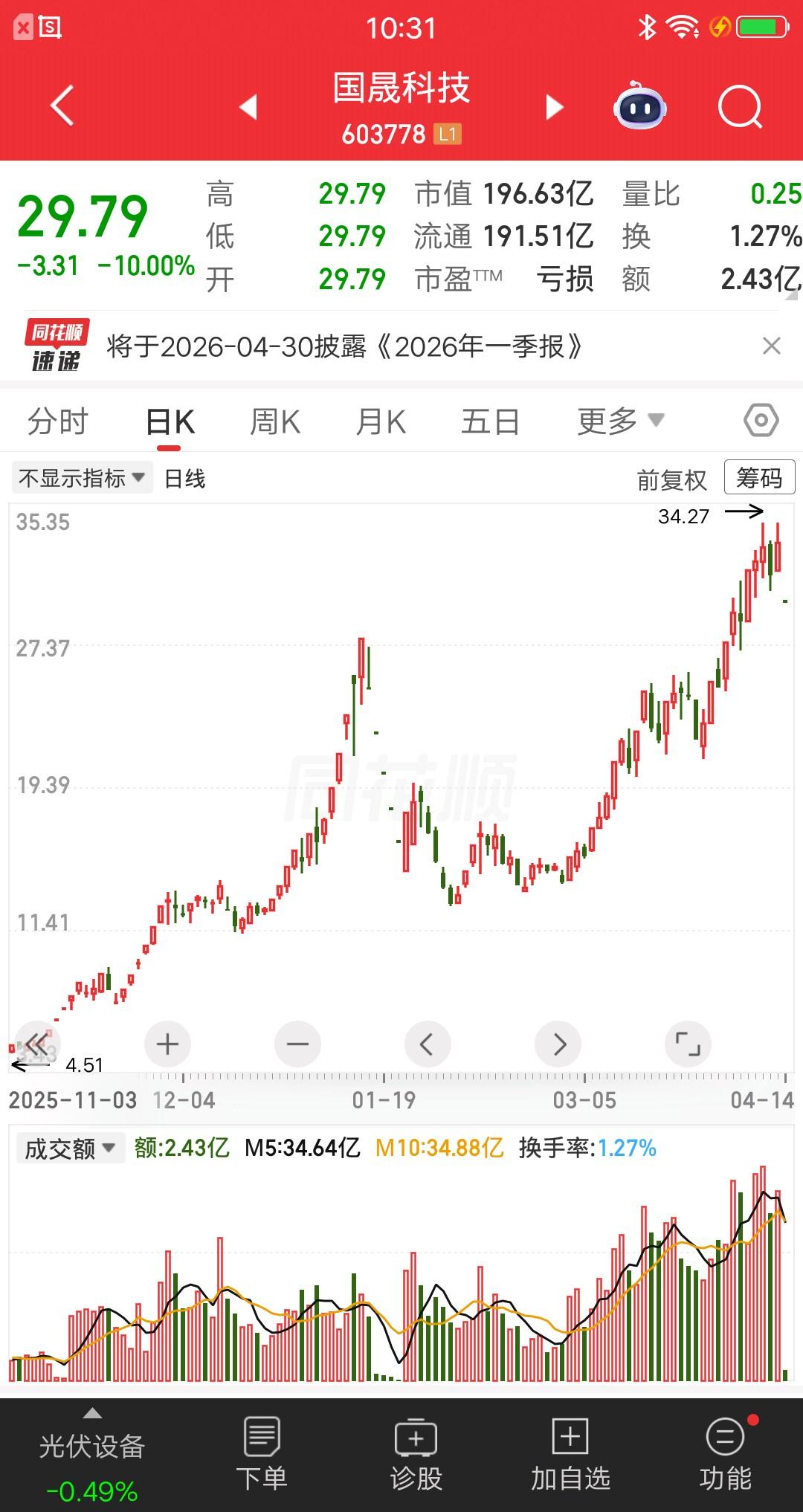 A股今天最惨的票诞生了,公司突发核弹级利空,跌停封单金额最多,高位买入的资金全部闷杀,就问你们惨不惨? 该票昨日发布公告,公司董事会审议通过,终止收购铜陵市孚悦科技有限公司100%股权,原因为交易先决条件中的并购贷款未达成。股价应声一字跌停,目前仅成交2.41亿,板上还有19.7亿资金在排队。这是什么概念?假设每个散户卖出一万块,那就有19.7万散户割肉,恐怖如斯呀。 其实就算没有利空也该杀跌了,因为没有只涨不跌的股票,主力需要一个理由出货,这样舆论就怪不到主力头上。 运气不好的股友,保持乐观心态吧,常在河边走哪有不湿鞋,平常心看待。