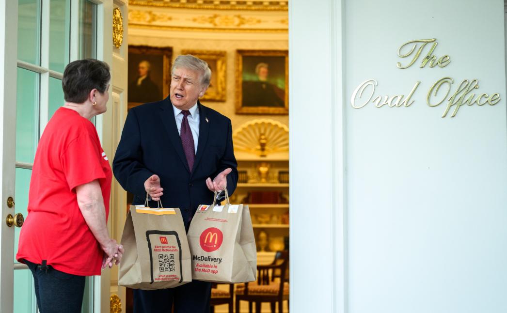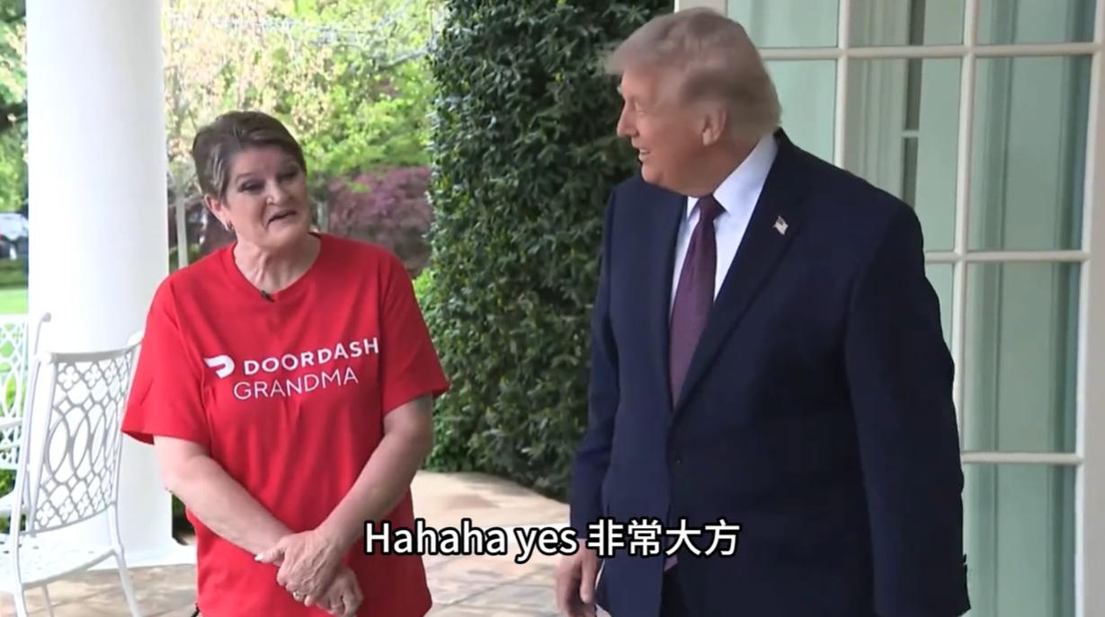 特朗普点外卖,为总统先生送外卖的外卖员奶奶火啦,这位外卖员奶奶还收到了总统先生的小费! 外卖员:很高兴见到您,您有一份外卖,总统先生。 特朗普:噢,太棒了,看着挺好,真的。 特朗普:这不像是摆拍吧? 外卖员:全是您最爱吃的。(外卖为麦当劳) 特朗普:你们干得不错。 [灵光一闪]评一下:美国送外卖的不是外卖小哥,而是一位奶奶,这说明了什么?一是说明美国年轻劳动力短缺;二是说明美国有一部分老人退休金不够所以干外卖赚钱。 不知道的还以为是在拍戏,殊不知这是真实的场景,外卖奶奶穿着红色T恤到白宫送外卖,还与总统先生聊了几句,并收到了小费。(据媒体爆料特朗普给了外卖奶奶一百美元小费)