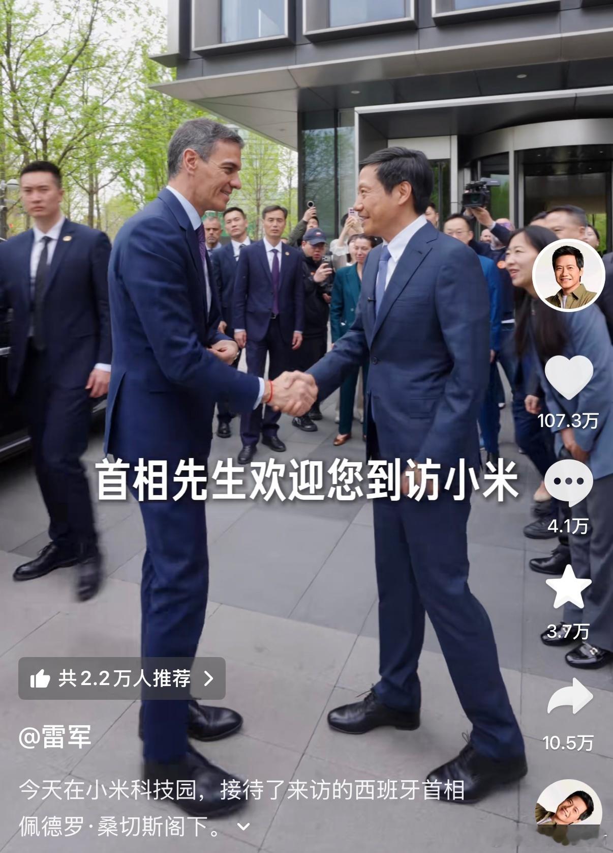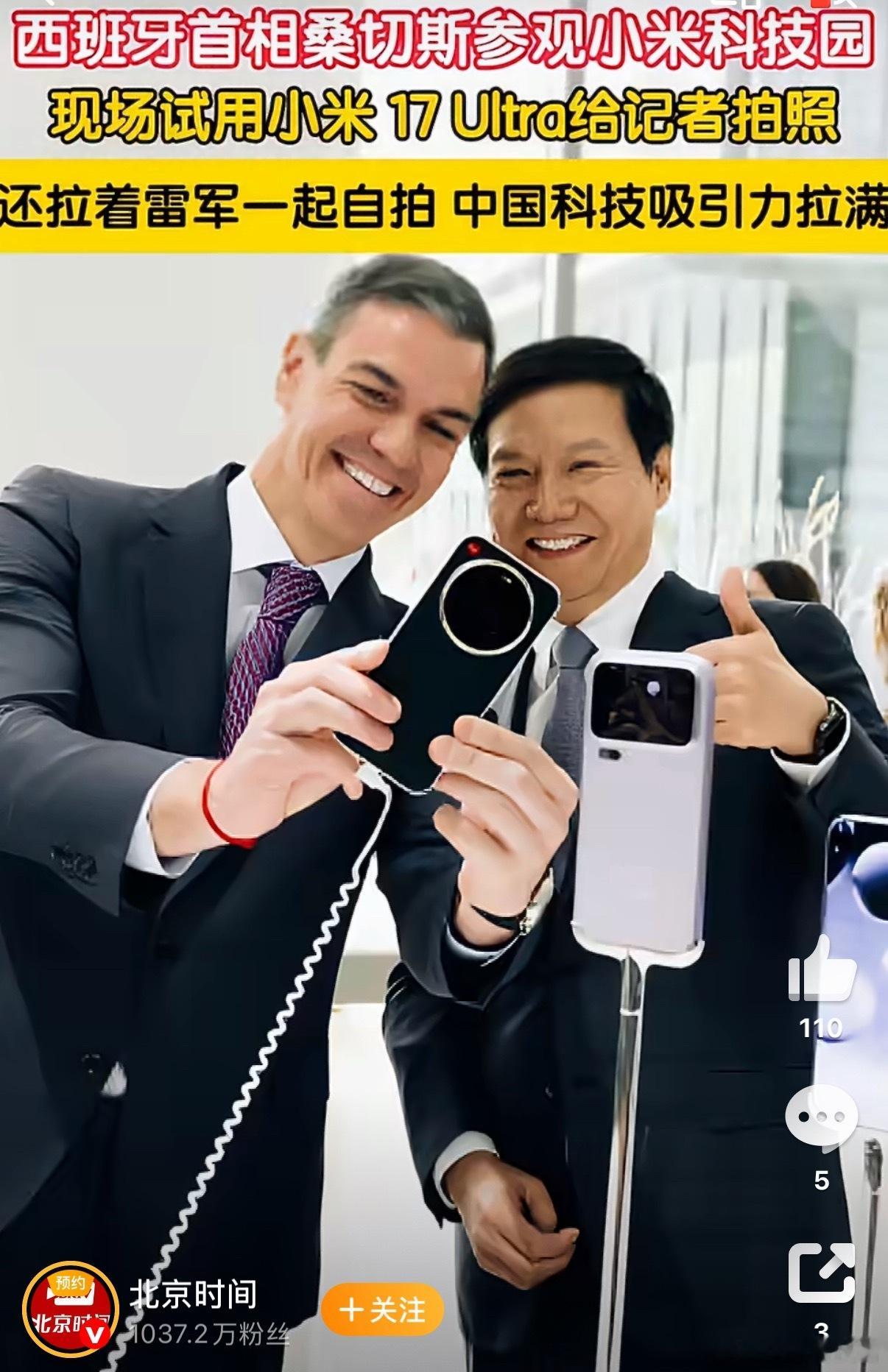 西班牙首相桑切斯到访小米,雷军亲自接待,现场体验了小米17 Ultra、新一代小米SU7后备箱、小米YU7试座。