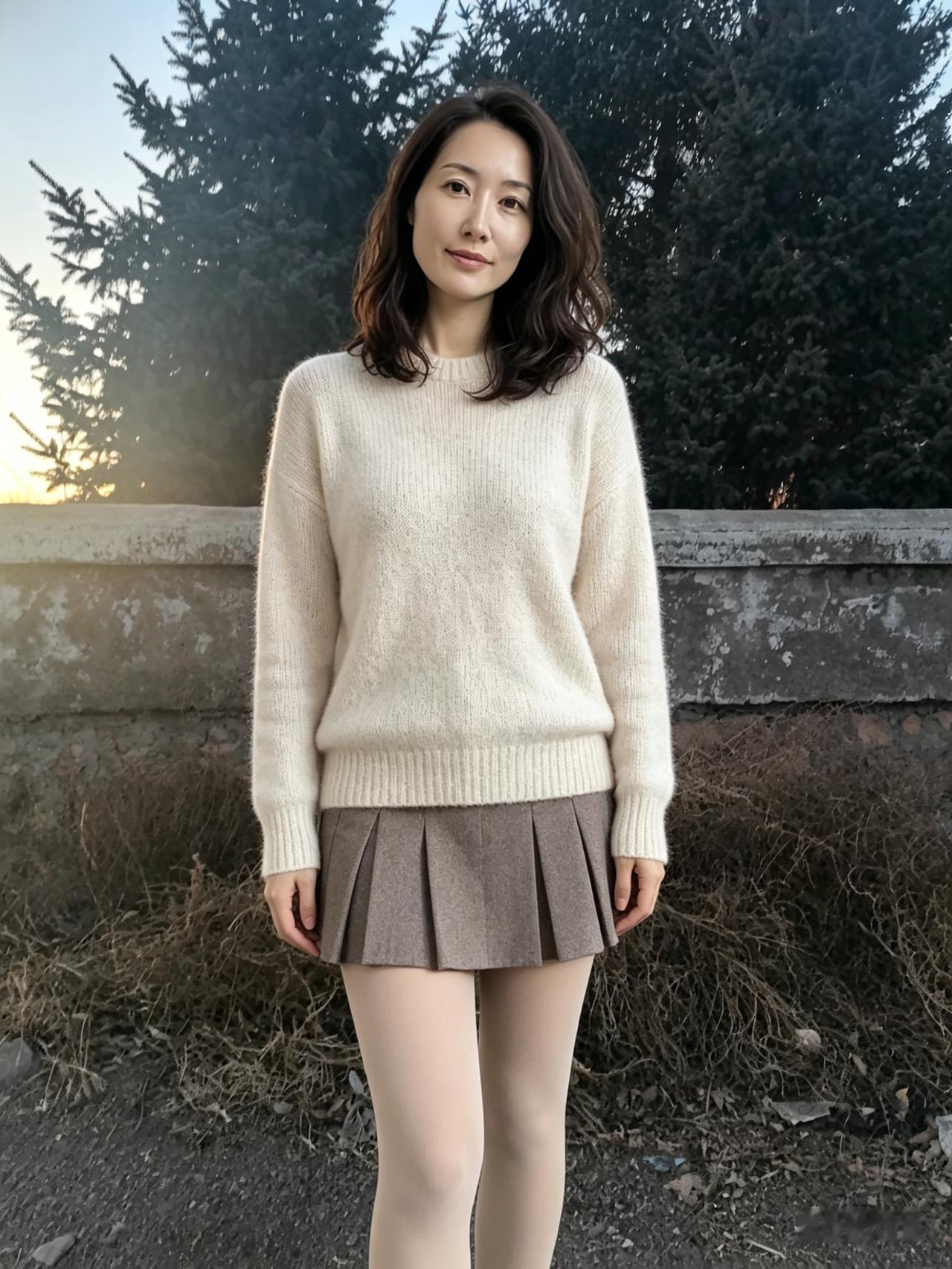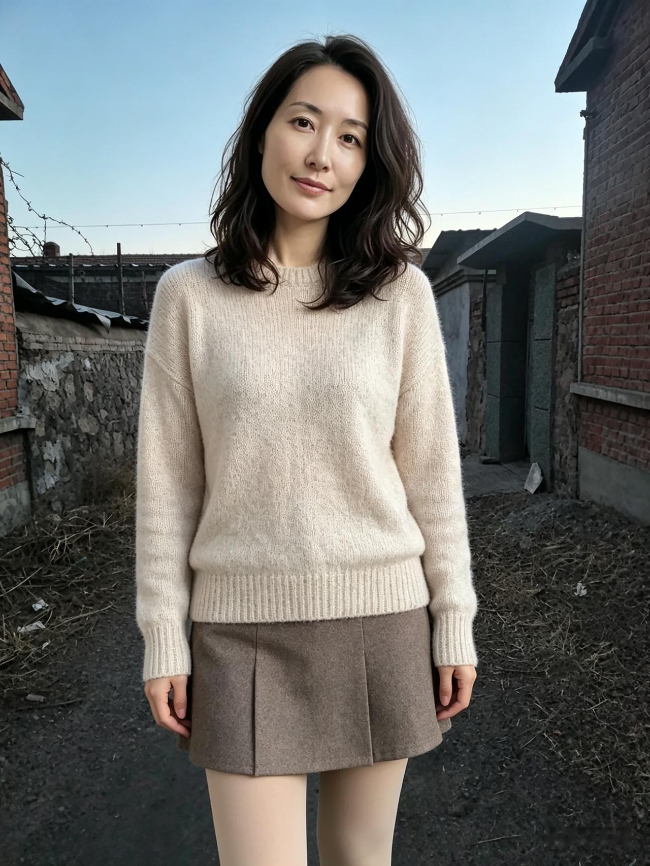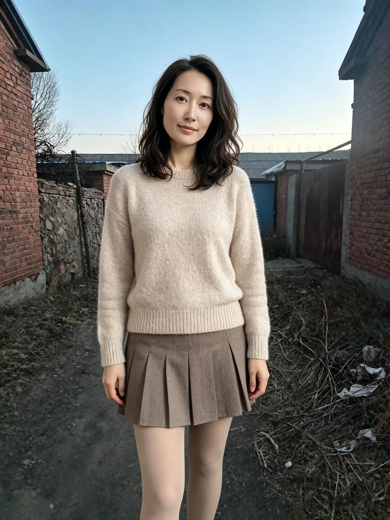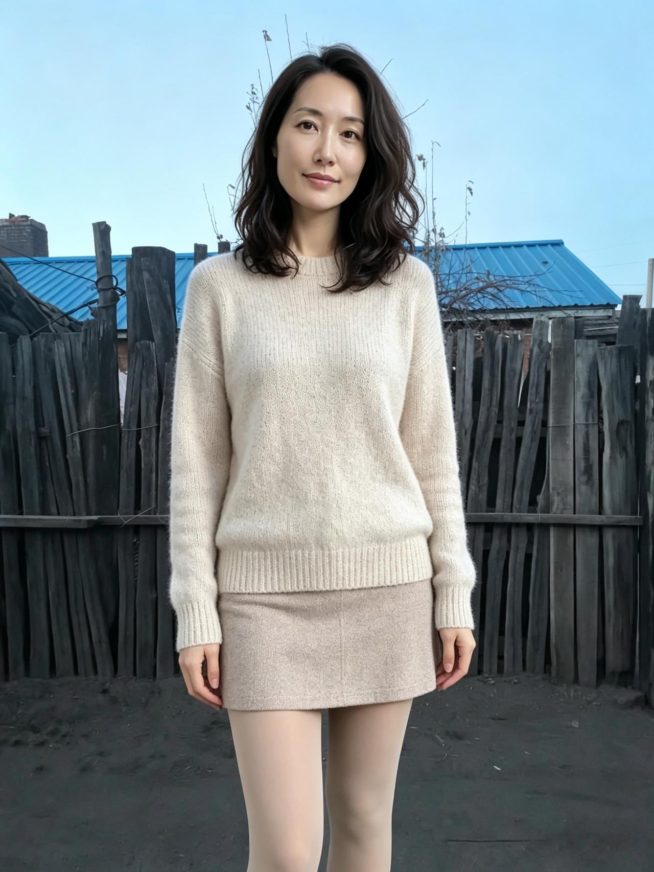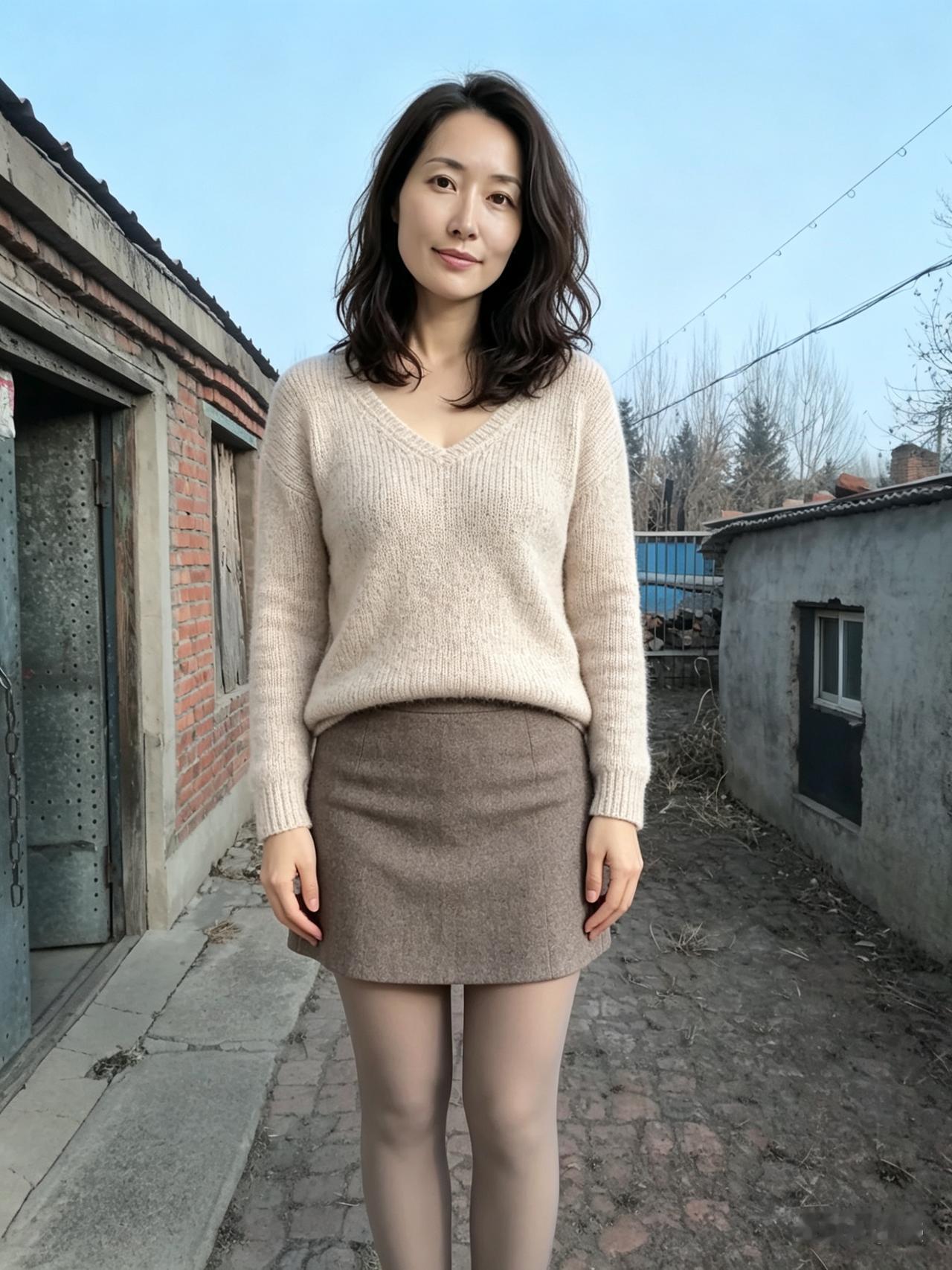 残雪檐边待化时,闲庭信步影迟迟。 毛衫漫裹春初暖,短裙轻摇巷底诗。