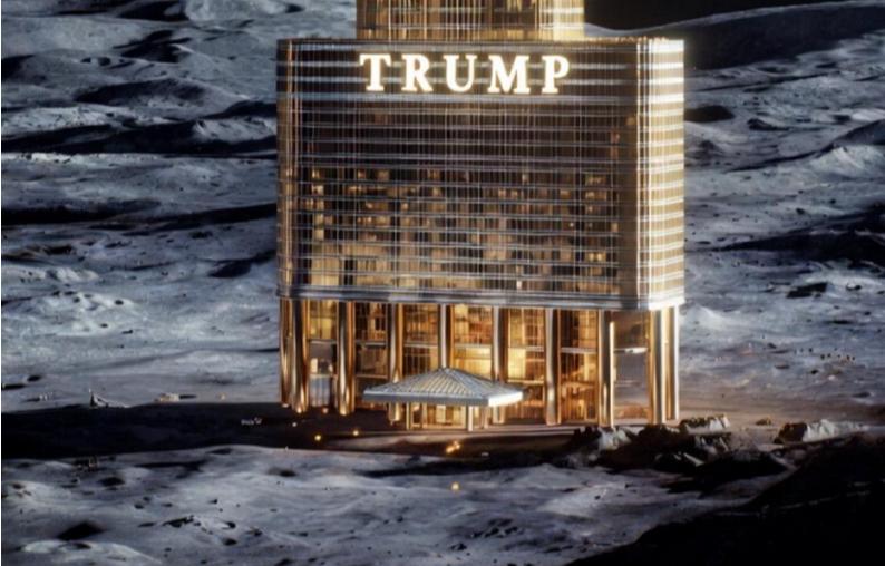 月球表面惊现特朗普大厦 偏爱出风头的特朗普,又在Truth Social上分享了一张人工智能生成的图片,显示月球上有一座特朗普大厦。在美国宇航局的阿尔忒弥斯2号任务安全溅落在太平洋后不久,特朗普发布了这张照片,没有任何附带文字。 这张照片本身很简单,但却有着显眼的品牌,在美国庆祝载人深空飞行取得新的里程碑之际,特朗普的名字被放在了月球场景的中心。由此,引发了人们对特朗普的月球愿景以及美国对月球野心的更广泛想象的关注。