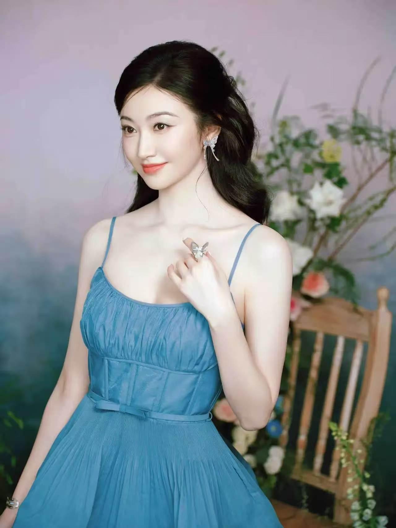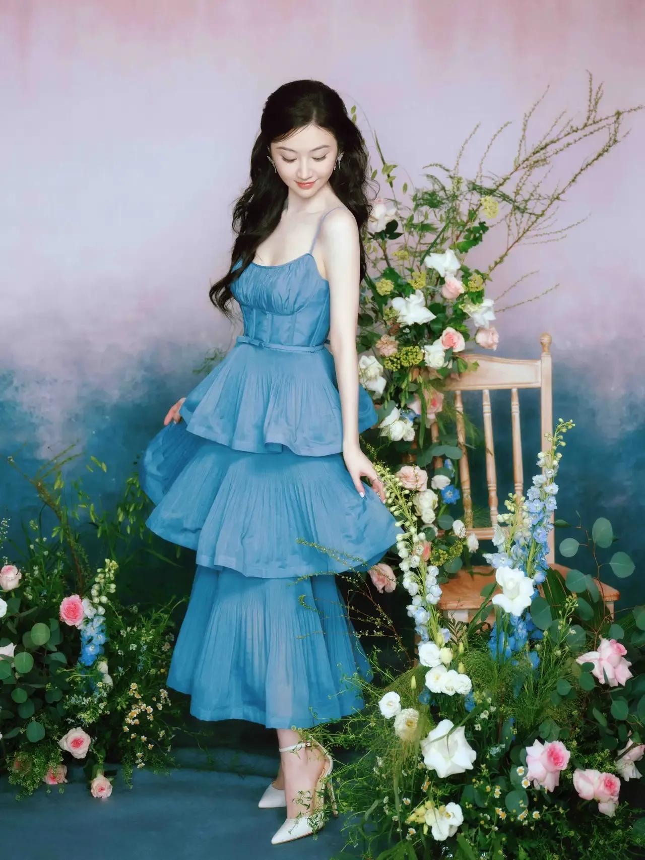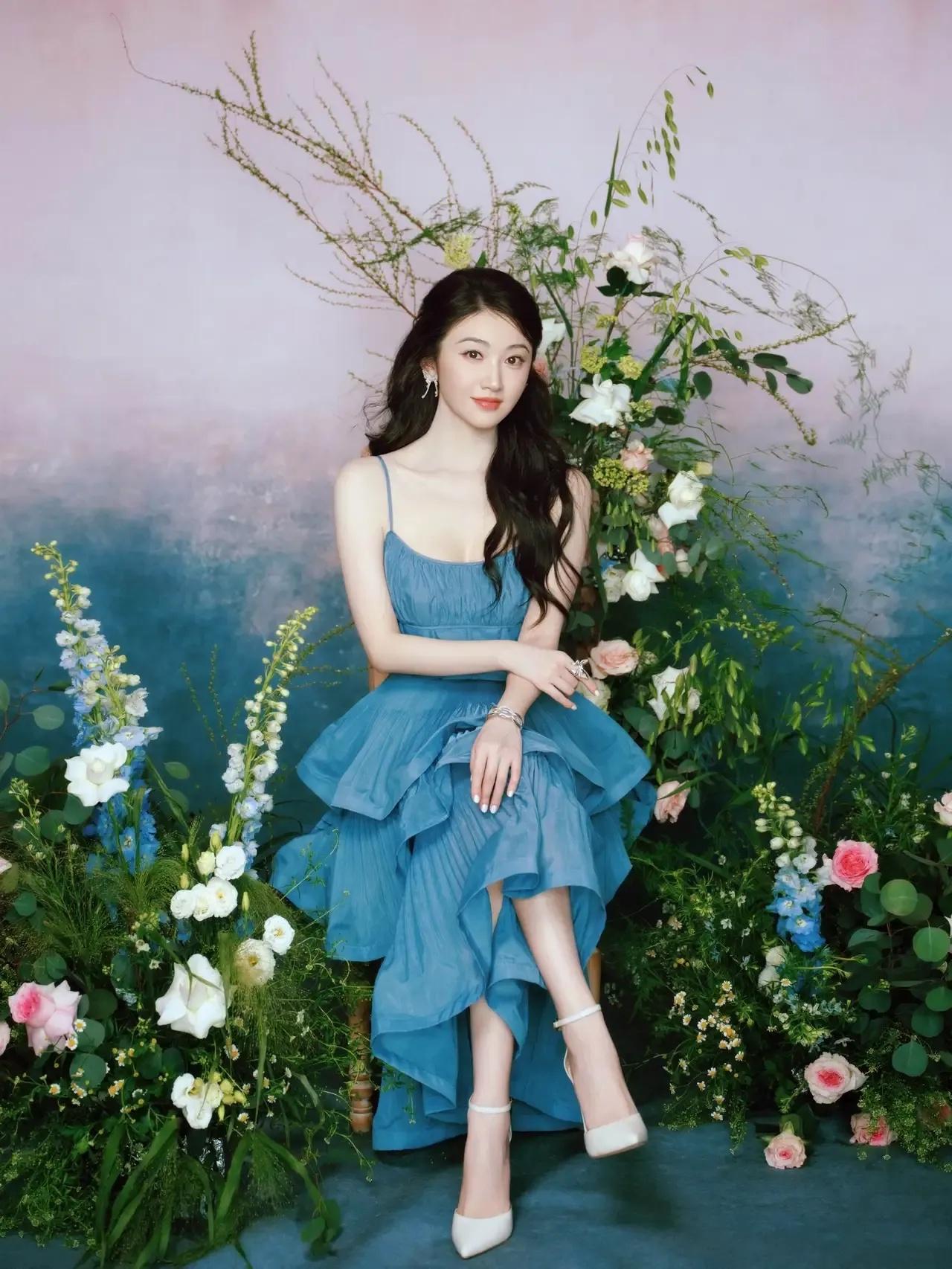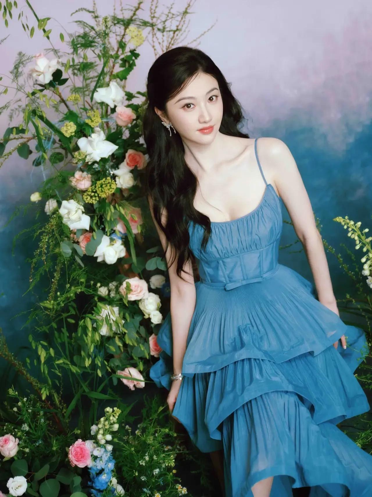 美女壁纸~景甜,身着澄澈蓝裙,置身繁花簇拥间,像从莫奈的油画里走出的少女,层层褶皱的裙摆轻垂,晕开温柔的蓝调