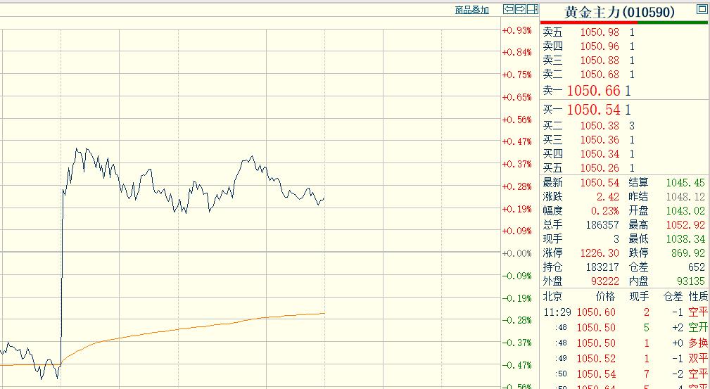 随着外盘的上涨, 日内恢复交易之后, 国内黄金期货直线拉升, 上午主力合约 最高升至1052.92元。 截止11:30分, 国内黄金主力合约 停收于1050.54元。 期货小褚认为本月 有突破1100的可能性!