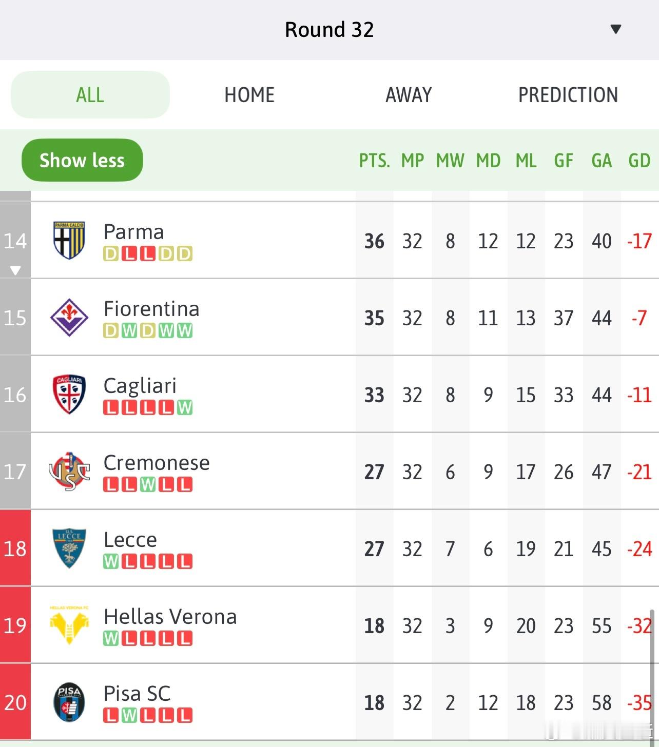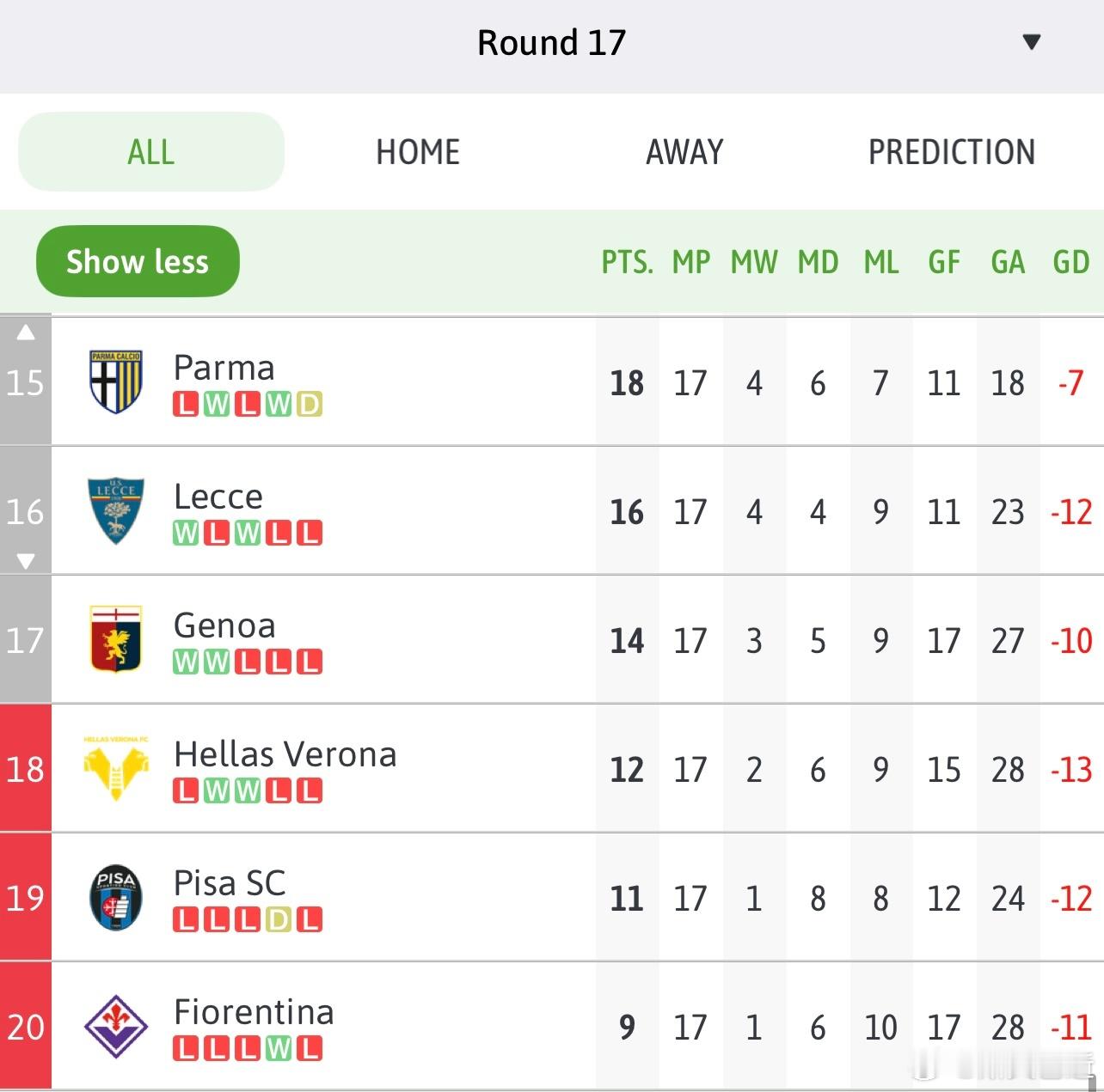 但他们中后期发力,在还有欧战任务的情况下,两线都在前进,进入2026年联赛7胜5平3负,算是从地狱逃出来了。意甲
