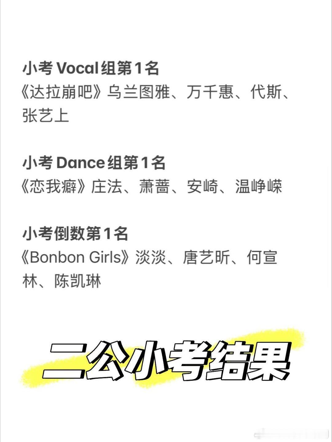 乘风二公小考结果(局面发生改变🧐)一公小考和公演垫底的庄法,温峥嵘,张艺上都上桌了《达拉崩吧》乌兰图雅初舞台就准备唱的歌淡淡带领的《bonbon girl》实力团拿了倒一