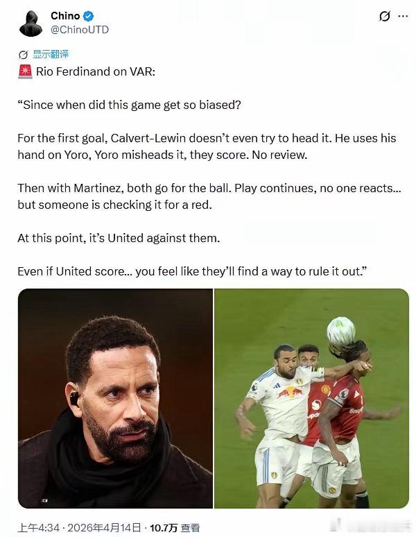 费迪南德怒斥英足总:偏袒太过分,曼联进球也要吹?曼联连续两场遭争议判罚,两场都罚下一中卫。赛后,费迪南德炮轰英足总和裁判。他说:“比赛怎能如此偏袒?利兹联首球,勒温未争顶却用手推约罗致其失误,VAR却未介入。利马被罚下,两人争顶后均无异议,VAR却检查是否给红牌,这不是针对曼联?曼联进球,恐也会被吹无效。”足球英超曼联1比2利兹联曼联