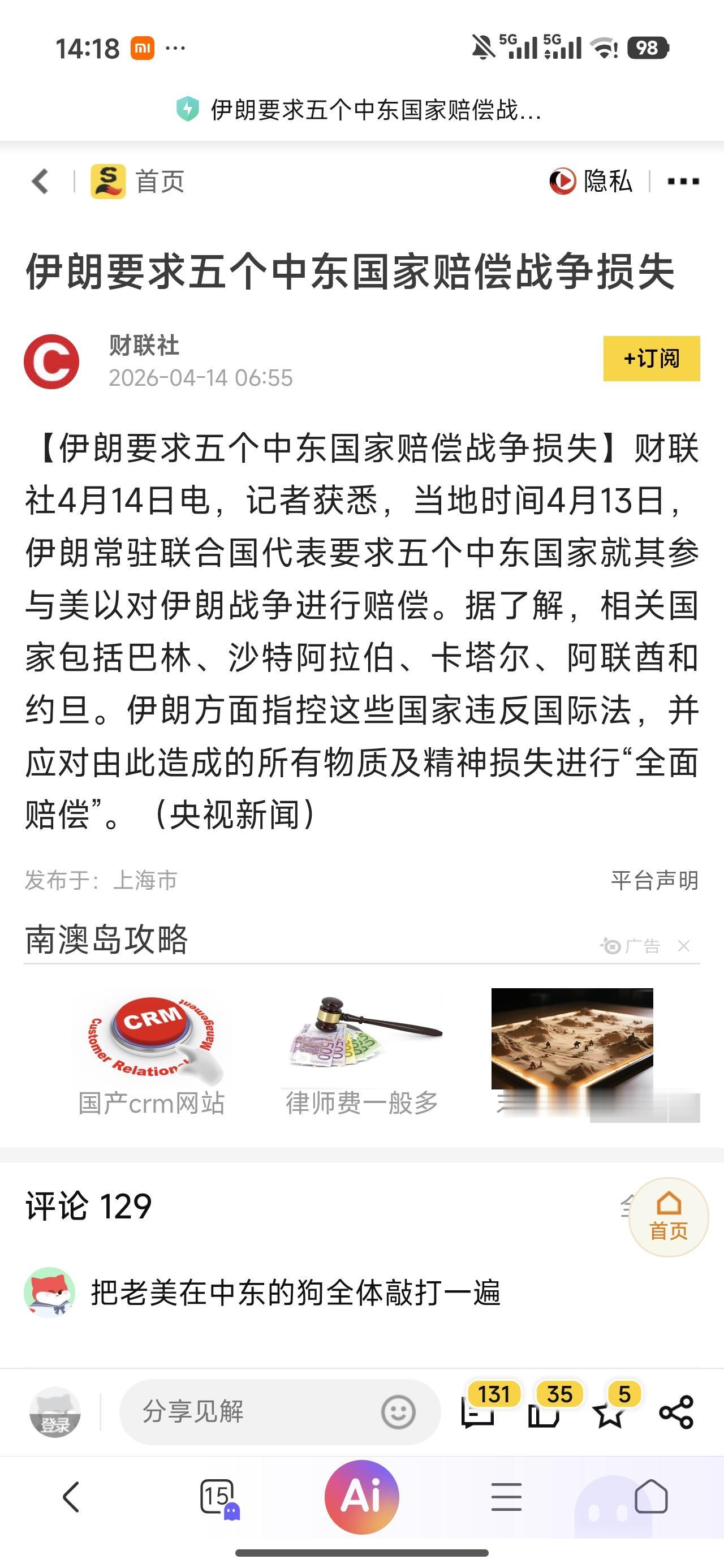 既然伊朗和美国态度一致,都要求这些国家给伊朗战争赔款,那没啥好说的,小弟们,那就听话,赔吧。